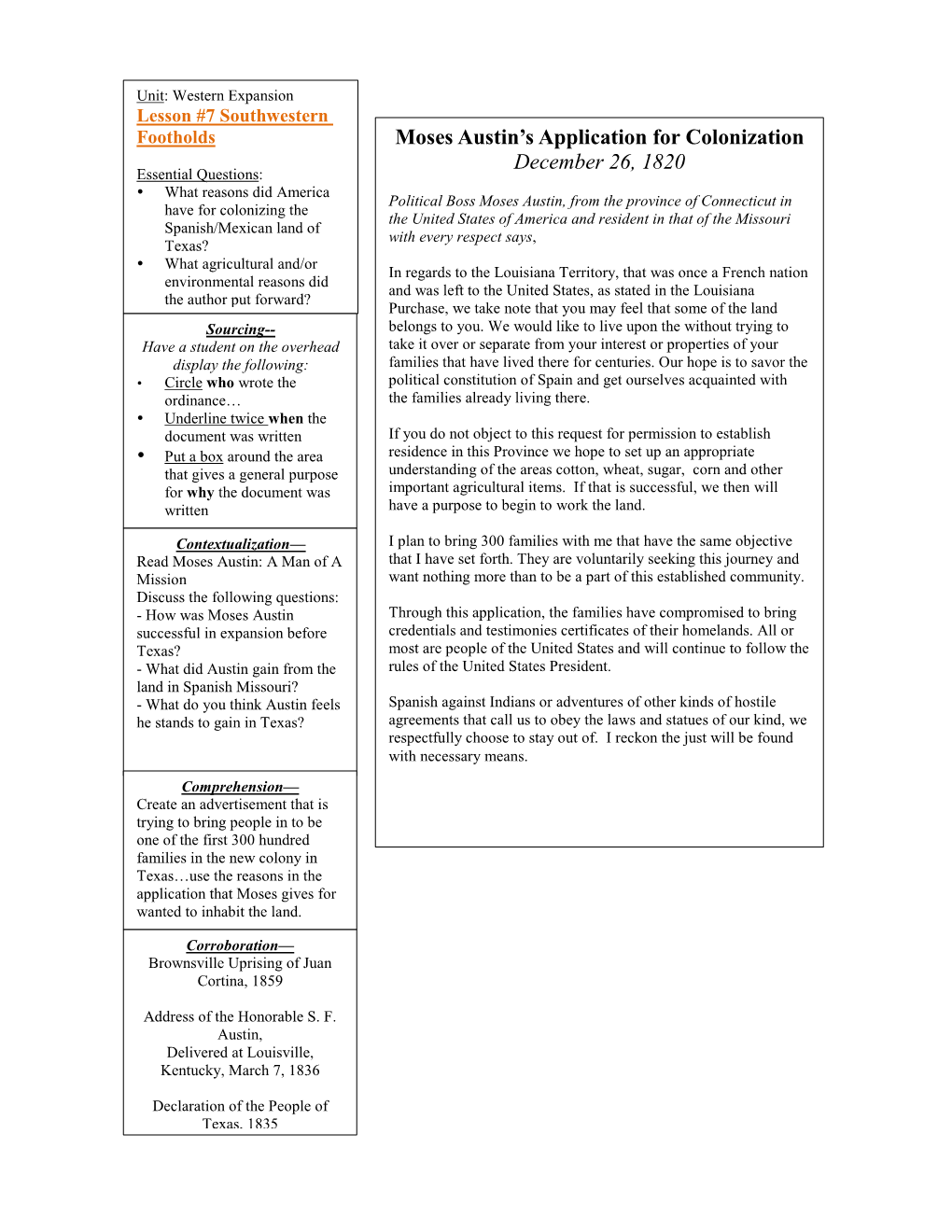 The Colonization of Texas: 1820-1830