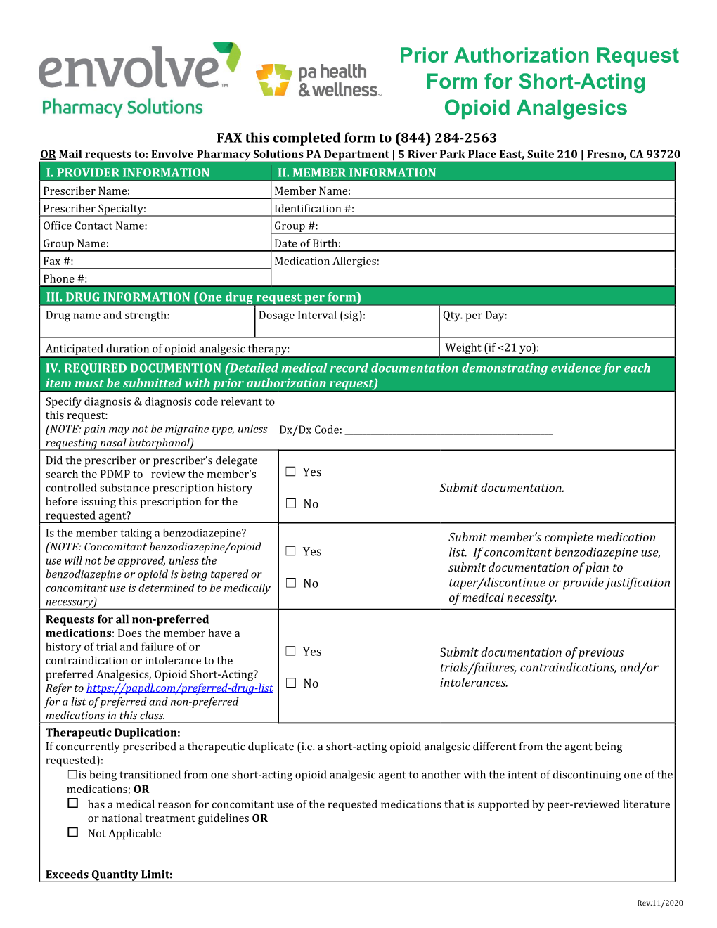 Prior Authorization Request Form for Short-Acting Opioid Analgesics