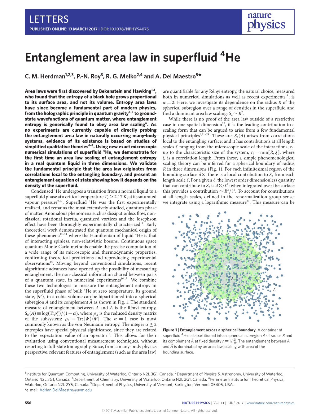 Annals of Physics 322 (2007) 1466–1476 www.elsevier.com/locate/aop Replacing energy by von Neumann entropy in quantum phase transitions Angela Kopp, Xun Jia, Sudip Chakravarty * Department of Physics and Astronomy, University of California Los Angeles, Los Angeles, CA 90095-1547, USA Received 15 July 2006; accepted 15 August 2006 Available online 28 September 2006 Abstract We propose that quantum phase transitions are generally accompanied by non-analyticities of the von Neumann (entanglement) entropy. In particular, the entropy is non-analytic at the Anderson transition, where it exhibits unusual fractal scaling. We also examine two dissipative quantum sys- tems of considerable interest to the study of decoherence and find that non-analyticities occur if and only if the system undergoes a quantum phase transition. Ó 2006 Elsevier Inc. All rights reserved. Keywords: Quantum phase transition and criticality; Entanglement; Dissipative quantum system; Von Neumann entropy; Anderson localization; Nonanalyticity of free energy In the thermodynamic limit two distinct states of matter cannot be analytic continua- tions of each other. Classical phase transitions are characterized by non-analyticities of the free energy [1]. For quantum phase transitions [2] (QPTs) the ground state energy often assumes the role of the free energy. But in a number of important cases this criterion fails to predict a QPT, such as the three-dimensional metal-insulator transition of non-interact- ing electrons in a random potential (Anderson localization [3,4]). It is therefore essential that we find alternative criteria that can track fundamental changes in the internal corre- lations of the ground state wave function. -