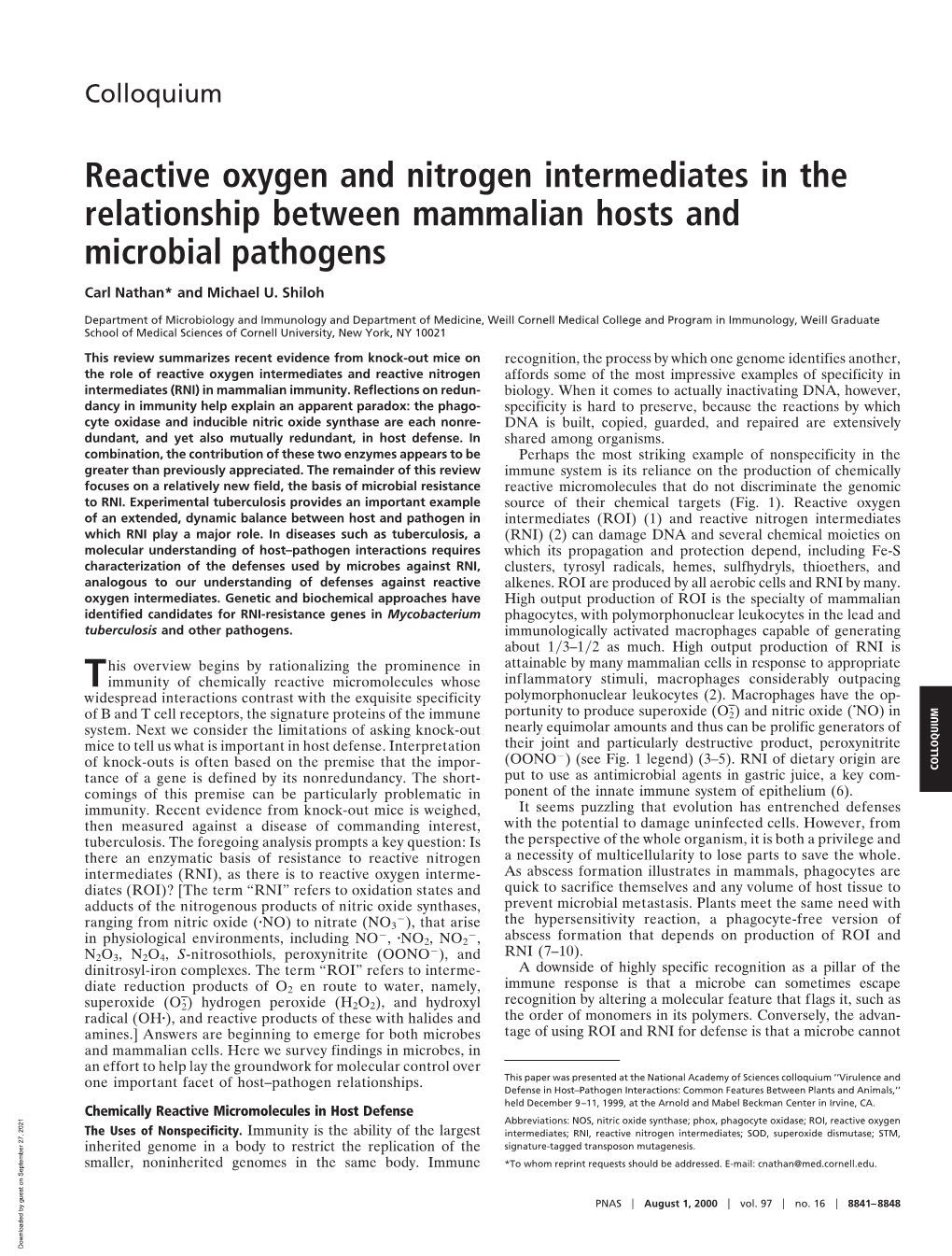 Reactive Oxygen and Nitrogen Intermediates in the Relationship Between Mammalian Hosts and Microbial Pathogens