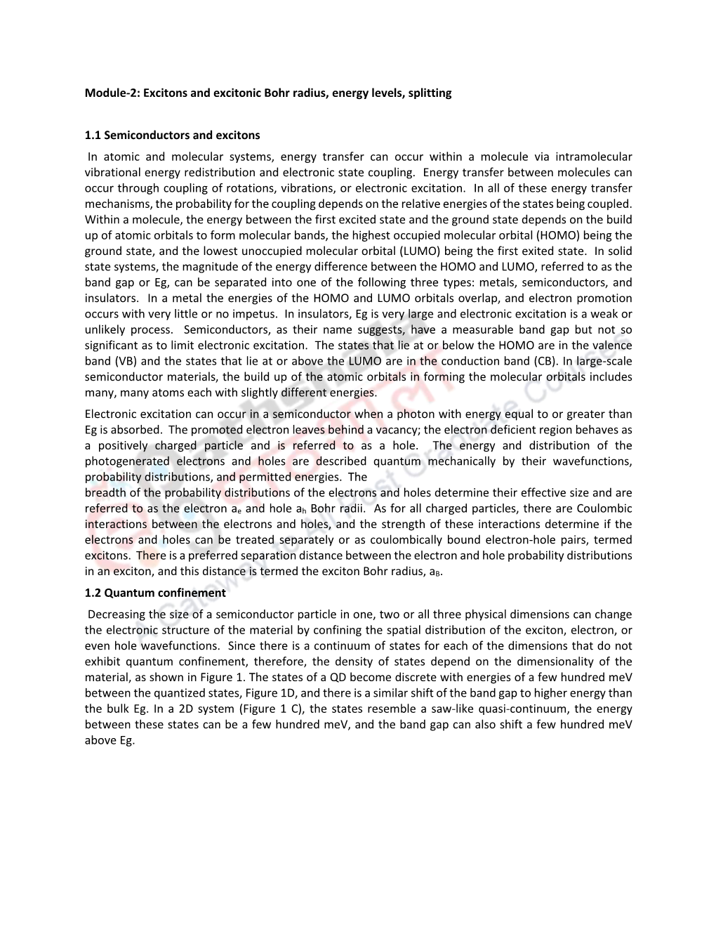Module-2: Excitons and Excitonic Bohr Radius, Energy Levels, Splitting 1.1