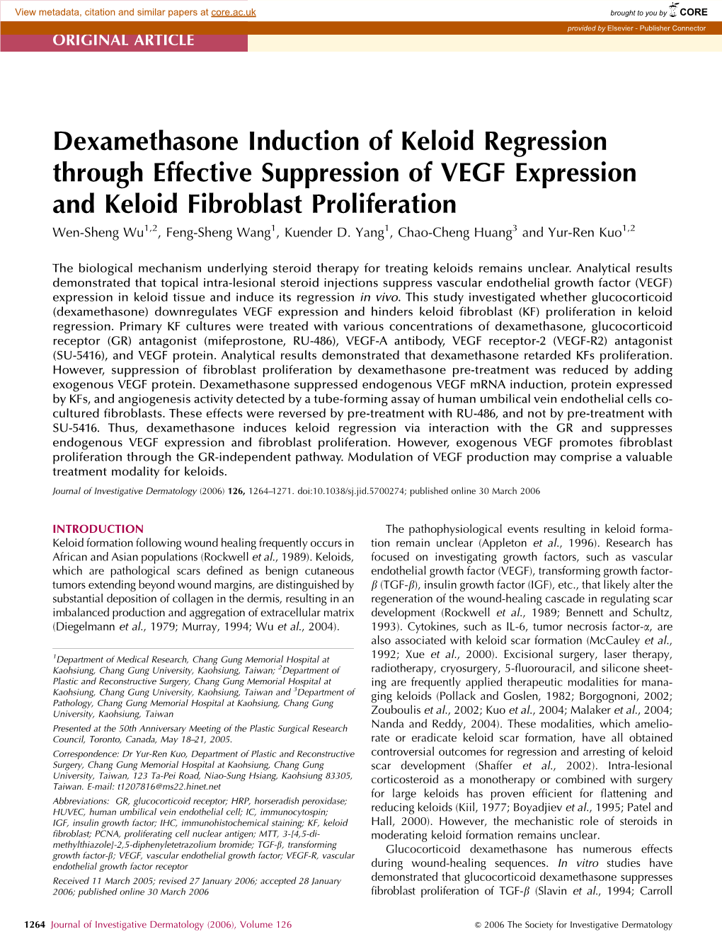 Original article Comparison between Dermoscopic and Histopathological Features of Keloids and Hypertrophic Scars Before and After Different Treatment Modalities Hanan H. Sabry a, Mohebat H. Gouda b, Ahmed H. Abd Elkareem a, Safaa ElBaathy a a Department of Dermatology Abstract and Andrology, Benha faculty of medicine, Benha University, Background: Keloids and hypertrophic scars (HTS) are abnormal b Egypt. Department of wound responses. Lack of knowledge about their basic biology had Pathology, Benha faculty of medicine, Benha University, prevented development of a targeted approach to the treatment of Egypt. keloids and hypertrophic scars. Aim of the work: The study aimed to Correspondence to: Mohebat evaluate the dermoscopic and histopathological features of keloids H. Gouda, Department of Pathology, Benha faculty of and hypertrophic scars before and after different treatment modalities. medicine, Benha Methods: Thirty-two patients with keloids and hypertrophic scars were included in the study for clinical, dermoscopic and Email: histopathological examination. Patients received treatment in form of [email protected] Fractional Co2 laser or 5FU or verapamil. Examination of slides Received: 21 December 2019 stained by H&E and the special stain (Masson trichrome) was Accepted: 12 June 2021 performed; also CD31 immunohistochemistry was performed in all cases. The histopathological examination of slides both HTS and keloid before and after treatment was done. The pattern of collagen fibers was determined by hematoxylin and eosin stained sections and Masson Trichrome stained sections. The pattern and extent of vascularity demonstrated by CD31 immunostaining was evaluated. Results: Vancouver scar scale showed significant improvement in all patients. histopathological improvement (the collagen fibers detected by Masson trichrome in the upper dermis of HTS cases become thinner and the MVD detected by CD31 IHC staining showed increased vascularity after treatment). -