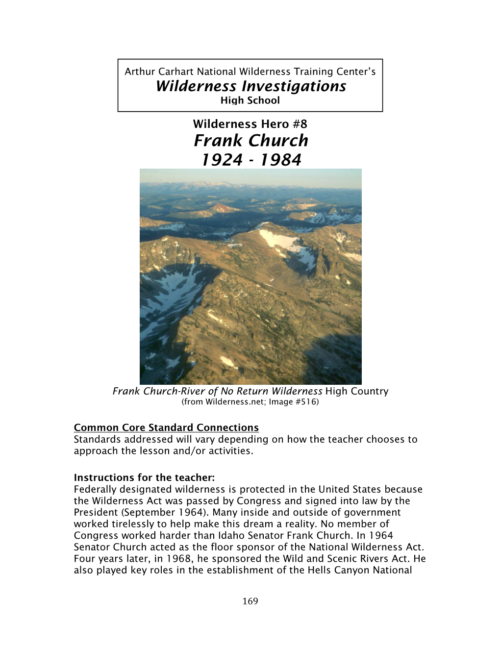 N 1956, AT THE TENDER AGE OF THIRTY-TWO, Frank Church made a bold bid for the United States Senate. After squeak- I ing out a victory in the hotly contested Idaho Democratic pri- mary, Church faced down incumbent Senator Herman Welker, re- ceiving nearly percent of the vote. One issue that loomed over the campaign was an emerging dis- pute over building dams in the Snake River’s Hells Canyon. While Church and other Democrats supported the construction of a high federal dam in the Idaho gorge, their Republican opponents favored developing the resource through private utility companies. Idaho EVOLUTION voters split on the issue, and so, seeking to avoid a divisive debate, Church downplayed his position during the general election “be- of an cause it was not a winning issue, politically.”1 Senator Frank Church Although Church won the election, he could not escape the is- sue. Indeed, his victory and subsequent assignment to the Senate Committee on Interior and Insular Affairs put him at the center of a growing controversy about damming Hells Canyon. Over the next eighteen years, Church wrestled with balancing Idaho’s demand for economic growth and his own pro-development beliefs with an emerging environmental movement’s demand for preservation of nature—in Idaho and across the nation. As he grappled with these competing interests, Church under- went a significant transformation. While Church often supported development early in his Senate career, he, like few others of his time, began to see the value of wild places and to believe that rivers offered more than power production opportunities and irrigation water. -
