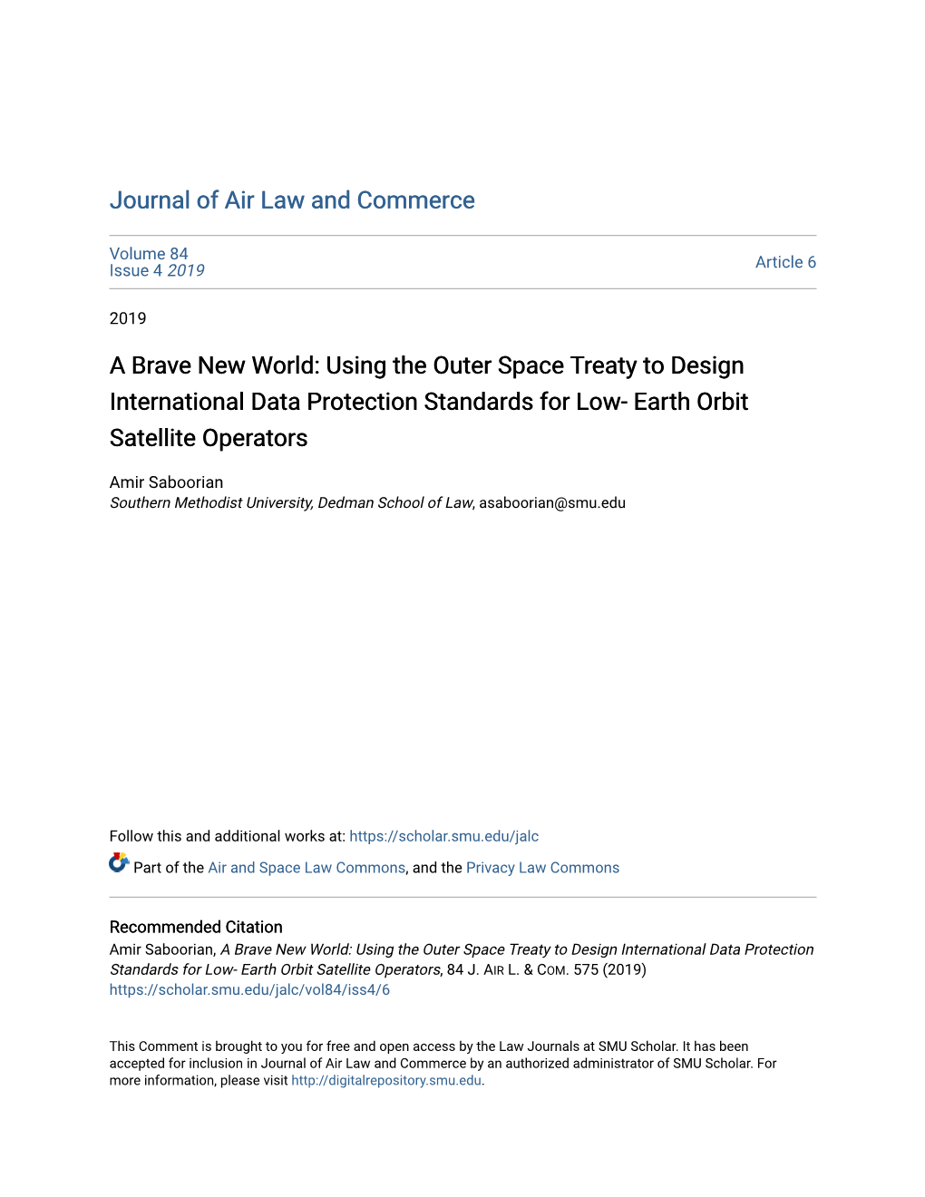 Using the Outer Space Treaty to Design International Data Protection Standards for Low- Earth Orbit Satellite Operators