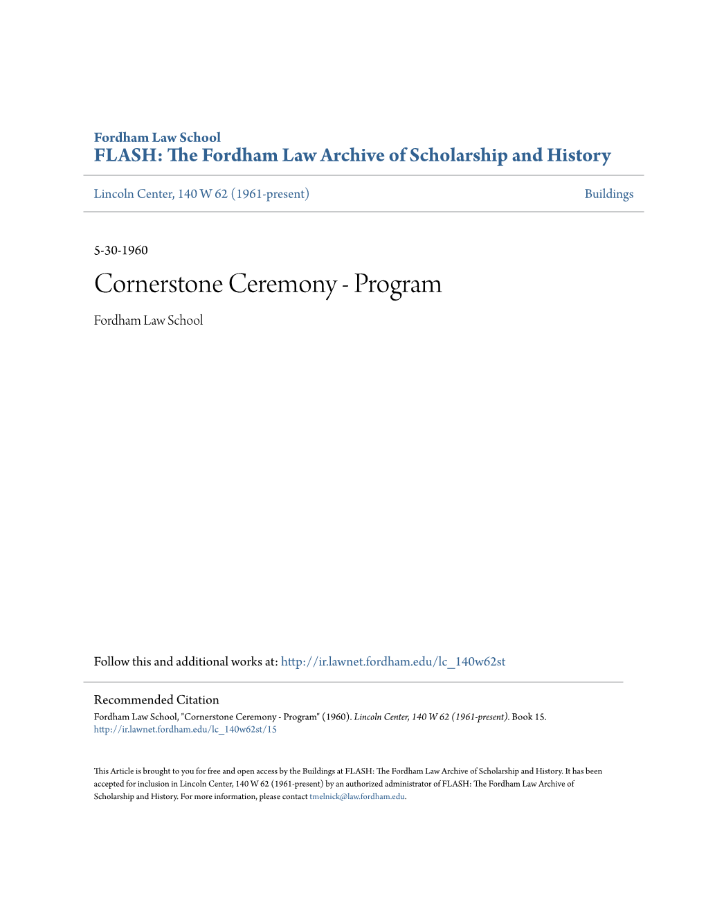 Cornerstone Ceremony - Program Fordham Law School
