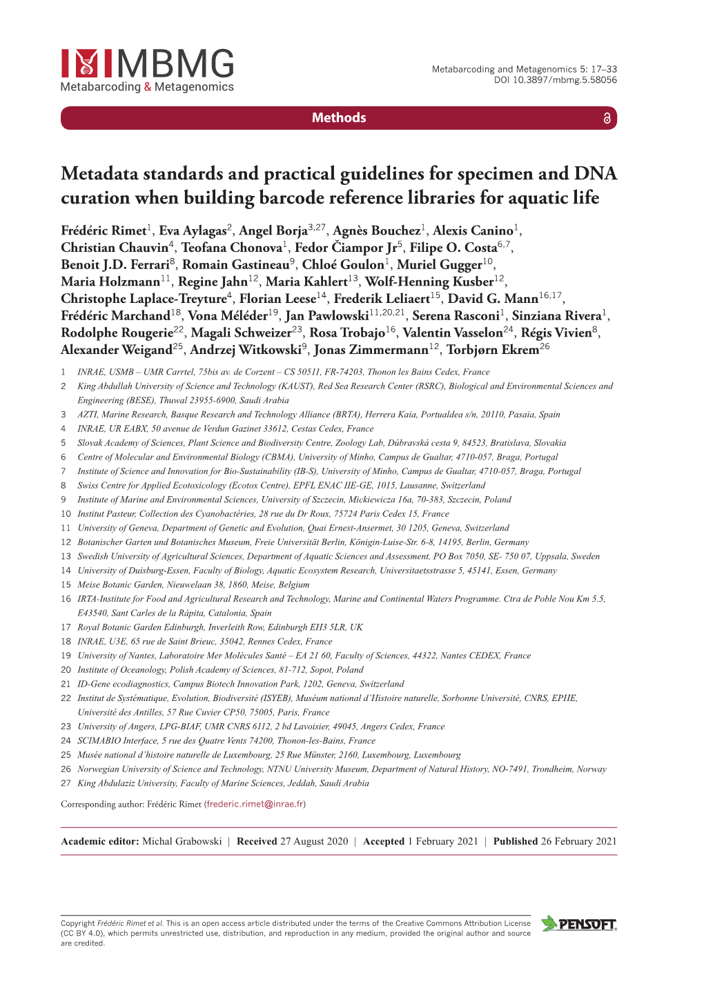 Metadata Standards and Practical Guidelines for Specimen and DNA