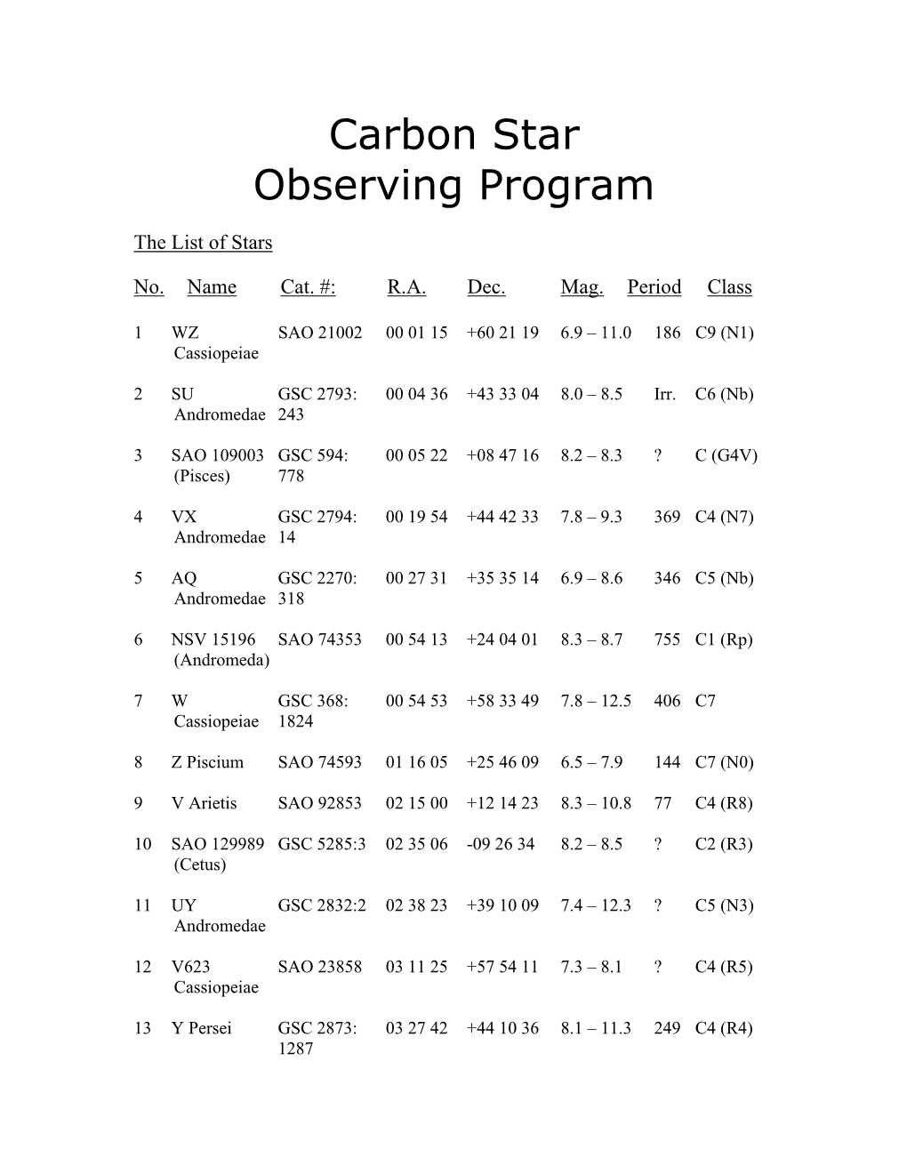 Carbon Star Observing Program