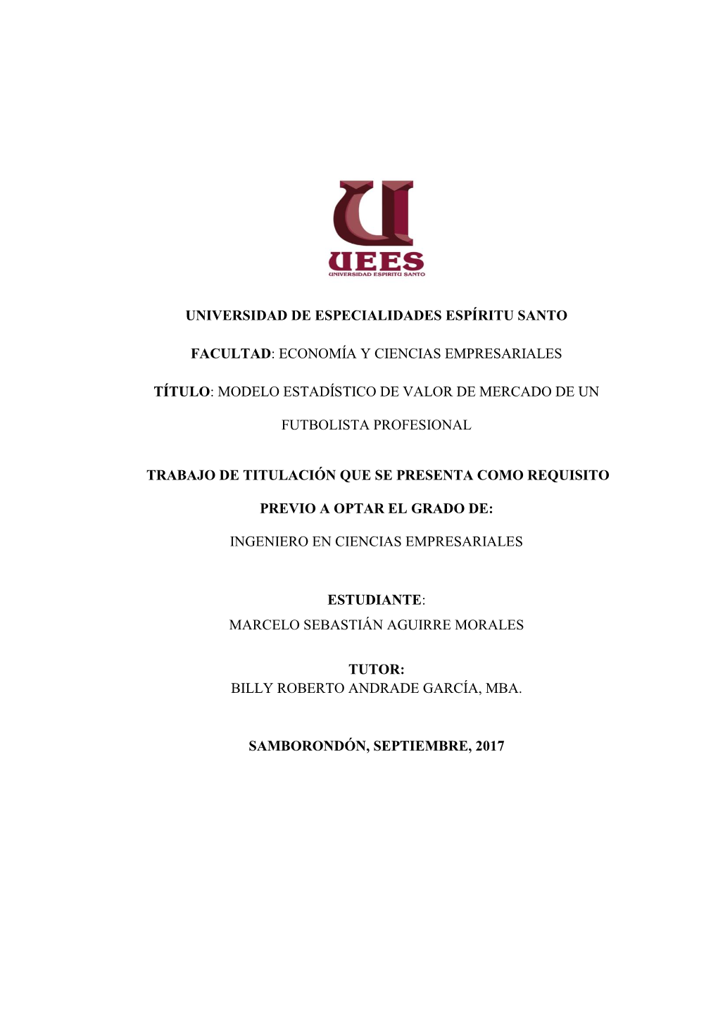 UNIVERSIDAD DE GUAYAQUIL FACULTAD DE CIENCIAS ADMINISTRATIVAS CARRERA: INGENIERÍA EN TRIBUTACIÓN Y FINANZAS Tesis presentada como requisito para optar por el título de Ingeniería en Tributación y Finanzas. TEMA: “IMPACTO TRIBUTARIO POR LA TRANSFERENCIA DE FUTBOLISTAS ECUATORIANOS A MÉXICO, DURANTE EL PERIODO 2010-2017” AUTORAS: ASENCIO PÉREZ RAQUEL VIRGINIA MIRANDA ORTIZ KARLA KATHERINE TUTOR DE TESIS: ECON. JOSÉ GONZALO NARVÁEZ CUMBICOS PALABRAS CLAVES: TRANSFERENCIA DE FUTBOLISTAS, IMPUESTO A LA RENTA, VALOR DE MERCADO, CONTRIBUCIÓN DE SOLIDARIDAD. GUAYAQUIL – ECUADOR 2019 i ii iii iv AGRADECIMIENTO Dios, tu amor y tu bondad son infinitas, gracias por ser mi luz, por acompañarme cada día de mi vida, por brindarme paciencia y sabiduría para culminar con éxito esta meta y todas las que tengas para mí. Debo agradecer a mi esposo Sr. Ing. Wilmer Guaycha, por ser mi apoyo incondicional, por ser pilar fundamental en este logro, por estar conmigo en cada momento, por tus consejos, gracias por ser mi mejor amigo. A mi niña por siempre, mi Dani, espero ser ejemplo en tu vida y que puedas ver que todo es posible cuando se tiene a las personas que te aman a tu lado. Gracias por tu paciencia mi amor. A mis padres, Ángel e Isabel, gracias por cuidar a mi hija mientras estuve en la Universidad, por ayudarme con ella cuando más lo necesitaba. A una persona muy especial, Ing. Karla Miranda Ortiz, con quien compartí desde el día uno de clases de aquel primer semestre, sueños y logros, ahora hechos realidad. Gracias amiga por todo. A mi tutor, Econ. José Narváez C. -