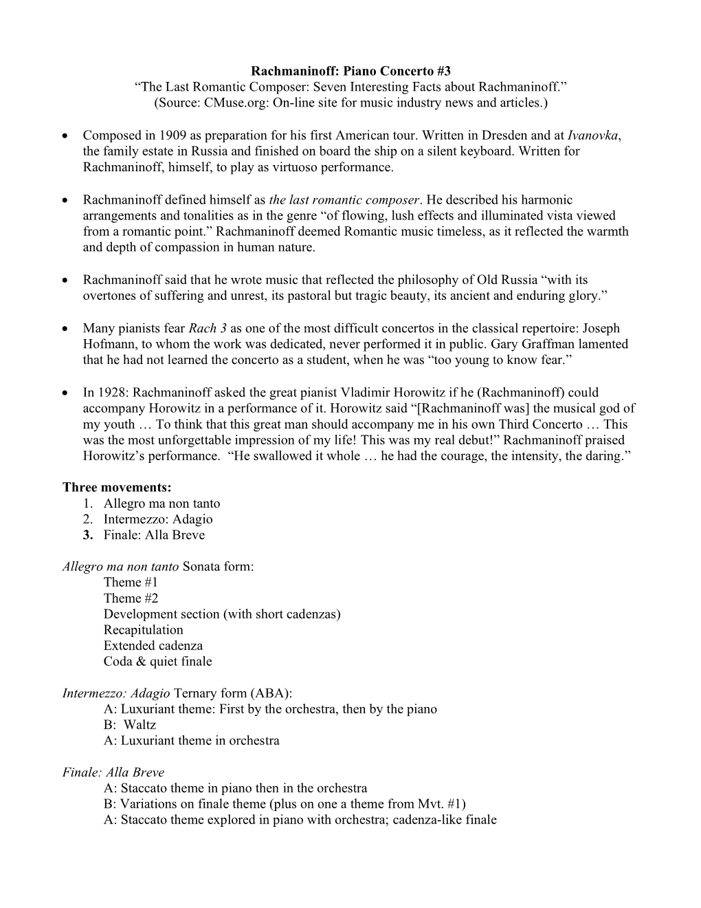 Rachmaninoff: Piano Concerto #3