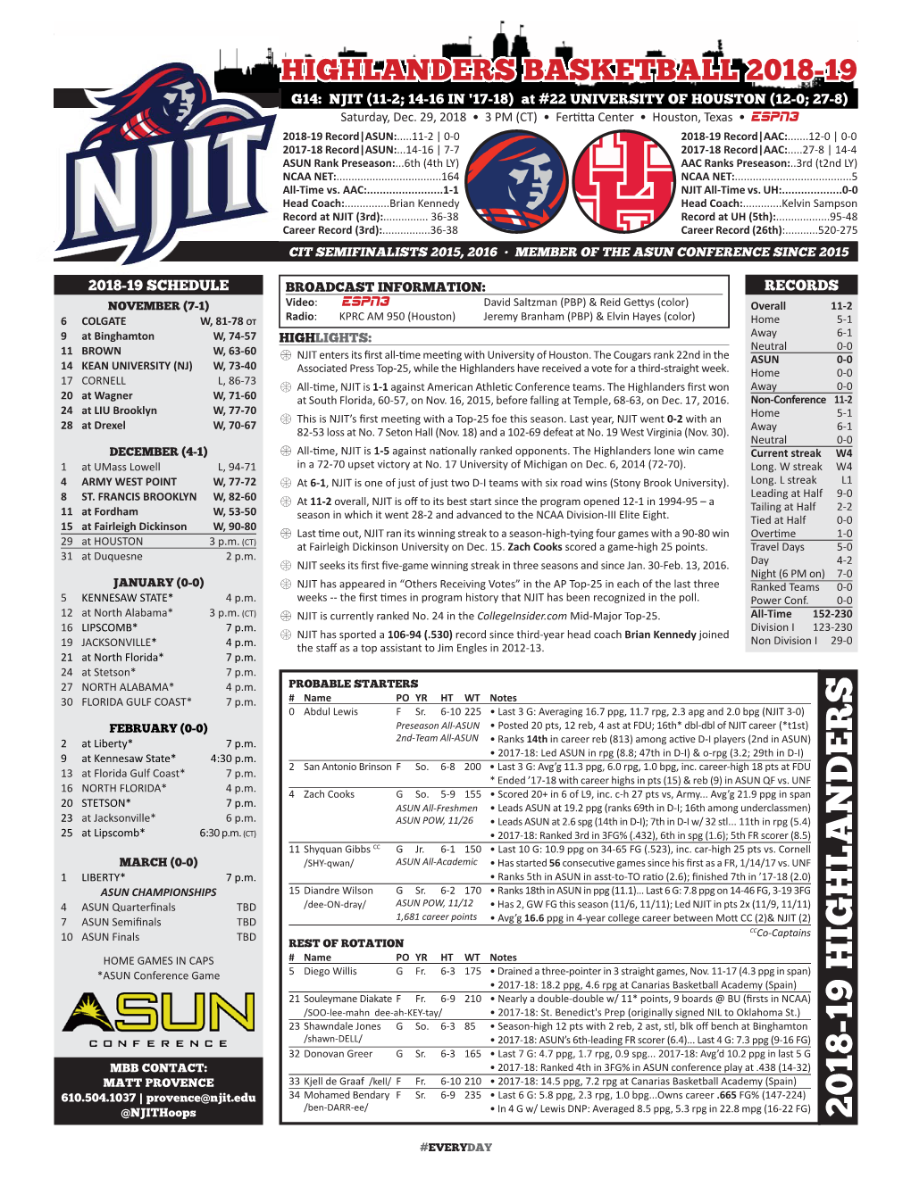 FAIRLEIGH DICKINSON MEN’S BASKETBALL 2016 NEC CHAMPIONS NCAA Tournament Appearances Game 4: 1985, 1988, 1998, 2005, 2016 Fairleigh Dickinson (1-2) NEC Champions vs Lipscomb (2-2) 1985, 1988, 1998, 2005, 2016 Saturday, Nov. 19 - 5:30 p.m. - Rose Hill Gymnasium - Bronx, N.Y. NEC Regular Season Champions 1982, 1986, 1988, 1991, 2006 LIVE COVERAGE: Audio: Sam Levitt (KnightVision) Stats: sidearmstats.com/fordham/mbball FAIRLEIGH DICKINSON VS. LIPSCOMB ALL-TIME SERIES Tonight's Tale of the Tape... • Tonight is the first ever meeting between the Knights and Bisons FDU Lip Overall 1-1 1-1 2016-17 Men’s Basketball KenPom.com 271 252 Schedule/Results FAIRLEIGH DICKINSON LAST TIME OUT Scoring Offense 73.7 86.8 Scoring Defense 69.0 75.5 November • The Fairleigh Dickinson men's basketball team dropped its first Scoring Margin 4.7 11.3 Nov. 11 at Seton Hall L, 70-91 of three games at the Johnny Bach Classic, falling to the host FG% 44.6 50.4 Nov. 15 FDU-FLORHAM W, 96-48 Fordham Rams 68-55 on Friday night. 3-Pt. FG% 33.3 37.9 • The Knights shot a higher overall percentage from the field than FT% 67.7 68.3 Nov. 18 at Fordham L, 55-68 the Rams, 39.1 percent (18-of-46) to 36.5 (19-of-52) percent FG% Defense 42.4 42.3 Nov. 19 Lipscomb (at Fordham) 5:30 PM but struggled mightily from downtown, converting just 3-of-16 3-Pt. FG% Defense 33.9 32.9 Nov. 20 Saint Peter’s (at Fordham) 1 PM (18.8%) from behind the arc. -