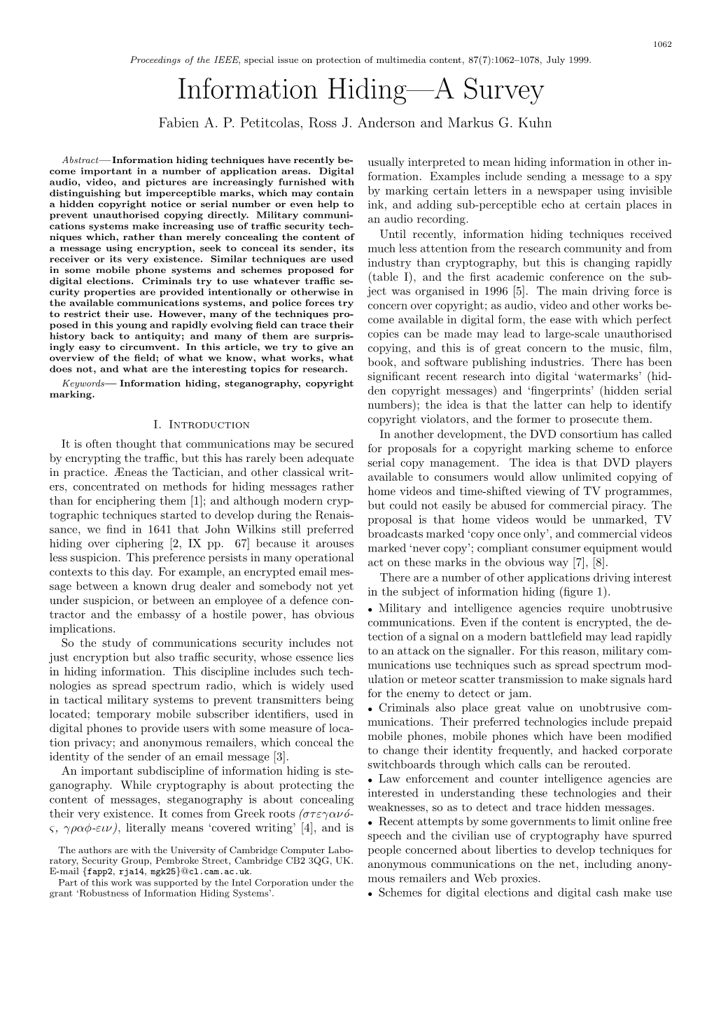Information Hiding—A Survey Fabien A