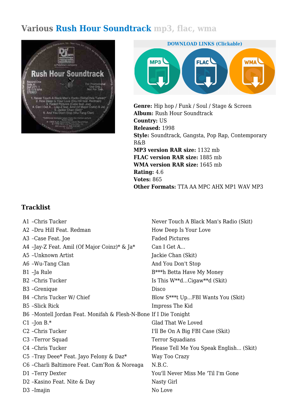 Various Rush Hour Soundtrack Mp3, Flac, Wma
