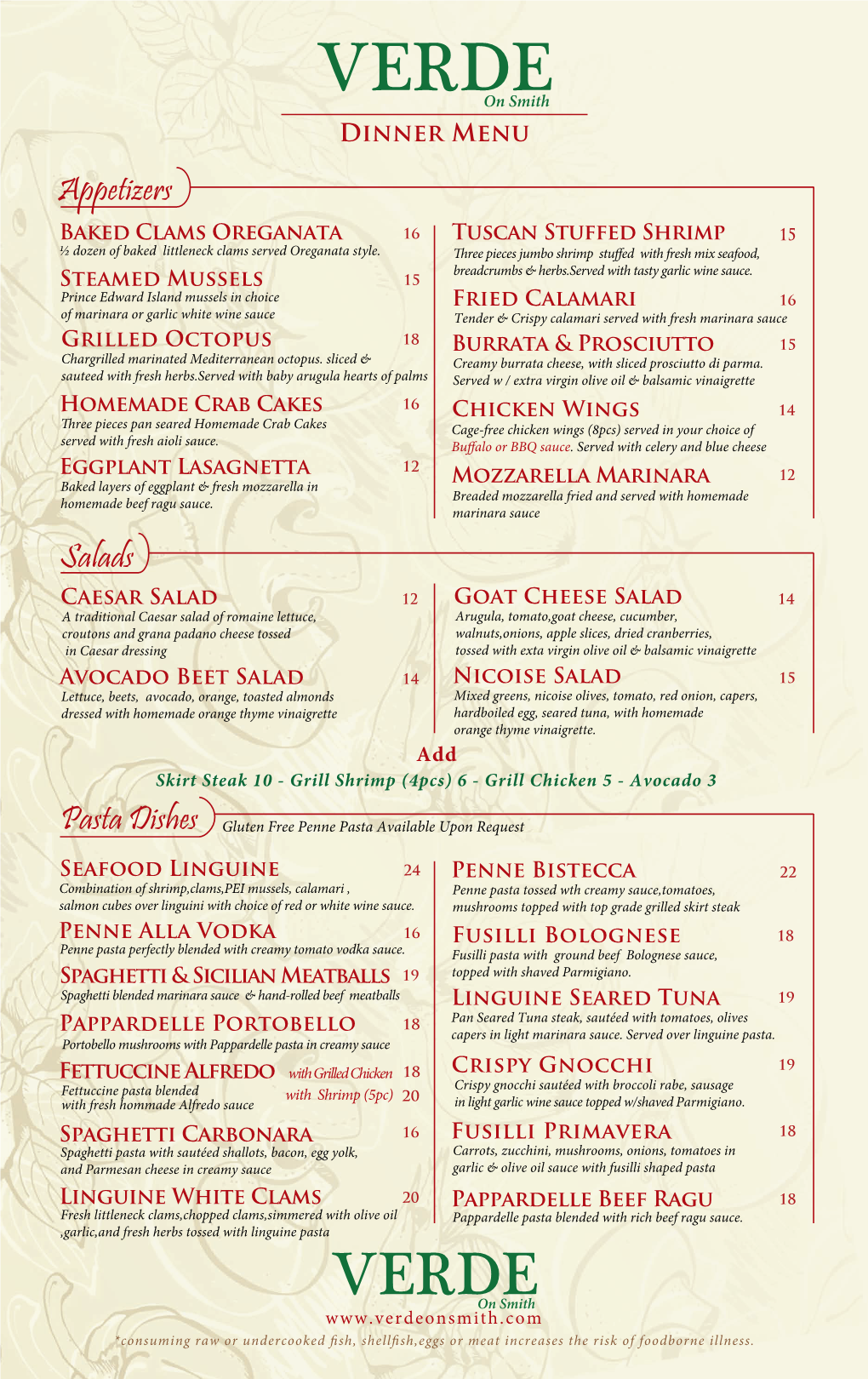 Pasta -12- Ravioli Polenta Al Forno -14- Pasta Fresca -15- Crostacei -16- Polli -15- Vitello -19- Carne & Pesce