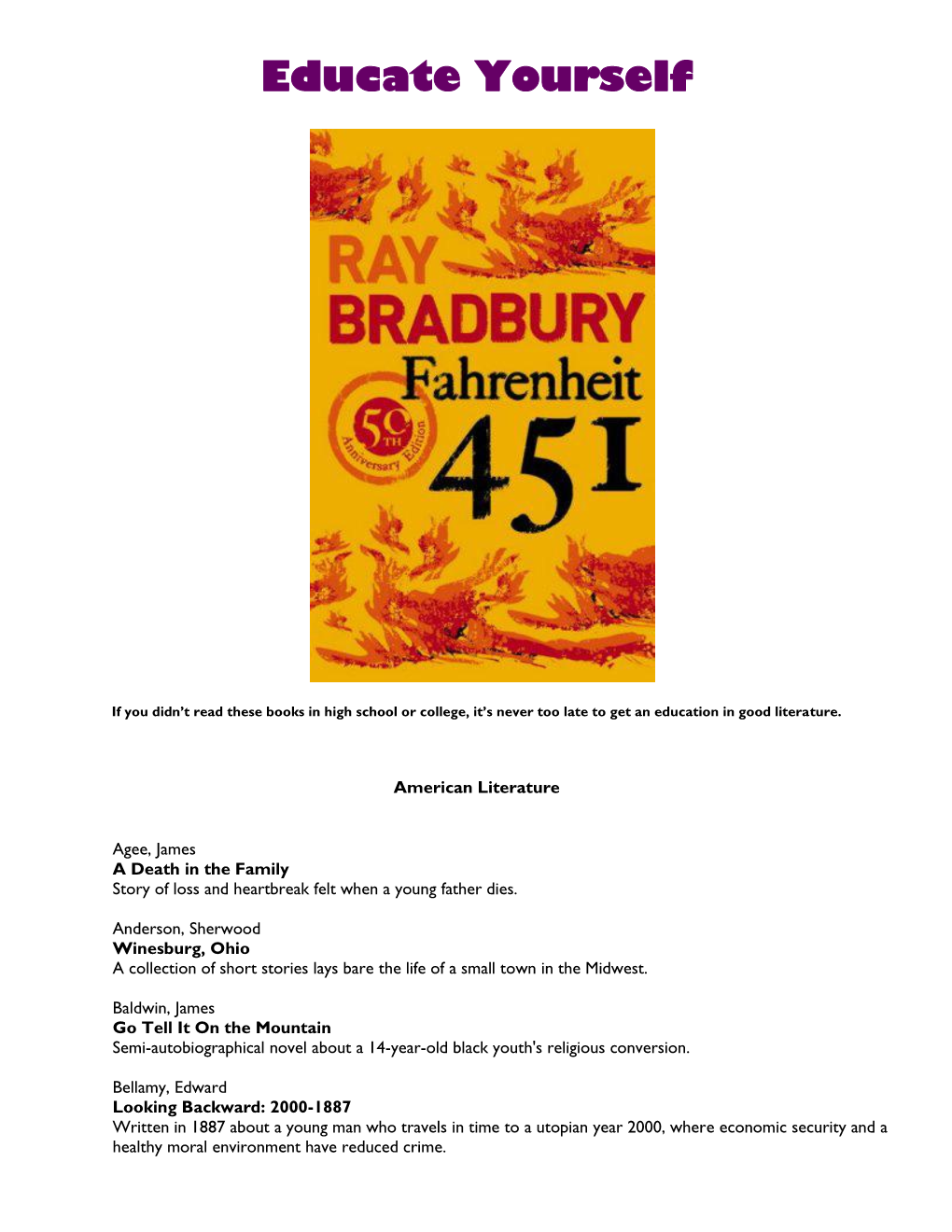 1. Classic Literature Reading List for Middle School Students By: LuAnn Schindler Many middle school students enjoy the connection with a young adult novel, but classic literature never goes out of style. Several humanities organizations have established a classic literature reading list that emphasizes the importance of reading timeless books. This list introduces new characters and alien worlds to the middle school set. Several of these books are commonly taught in middle school English classes, so adding them to a summer reading list can give your child an advantage when they come up during the school year. Title Author Level Points 20,000 Leagues Under the Sea Jules Verne 10.1 28 A Christmas Carol Charles Dickens 6.7 5 A Day No Pigs Would Die Robert Newton Peck 4.4 4 A Stranger Came Ashore Mollie Hunter 6.2 6 A Tree Grows in Brooklyn Betty Smith 5.8 23 A Wizard of Earthsea Ursula K. LeGuin 6.7 9 A Wrinkle in Time Madeleine L'Engle 4.7 7 Across Five Aprils Irene Hunt 6.6 10 Adventures of Sherlock Holmes Sir Arthur Conan Doyle 7.0 18 The Adventures of Tom Sawyer Mark Twain 8.1 12 Amos Fortune, Free Man Elizabeth Yates 6.5 5 The Bridge of San Luis Rey Thornton Wilder 7.1 5 Call It Courage Armstrong Sperry 6.2 3 The Call of the Wild Jack London 8.0 7 The Chocolate War Robert Cormier 5.4 8 The Count of Monte Cristo Alexander Dumas 8.8 34 Daddy Long Legs Jean Webster 6.1 6 Diary of a Young Girl Anne Frank 6.5 14 Dragonsong Anne McCaffrey 6.8 9 Dragonwings Laurence Yep 5.3 10 Enchantress From the Stars Sylvia Engdahl 7.3 15 The Endless Steppe: Growing up in Esther Hautzig 6.3 10 Siberia Fahrenheit 451 Ray Bradbury 5.2 7 Frankenstein Mary Shelley 12.4 17 The Ghost Belonged To Me Richard Peck 5.8 6 Goodbye, Mr. -