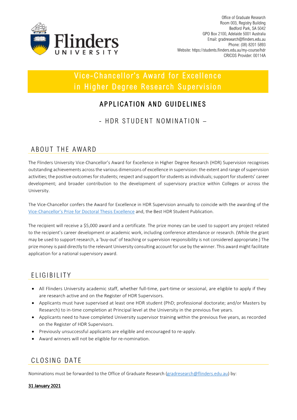 Vice-Chancellor's Award for Excellence in Higher Degree