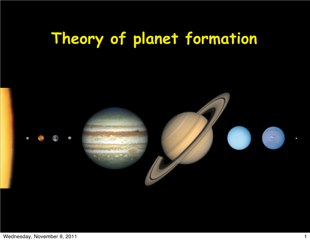 Chapter 8 Formation of the Solar System Agenda • Announce: – Mercury Transit – Part 2 of Projects Due Next Thursday • Ch