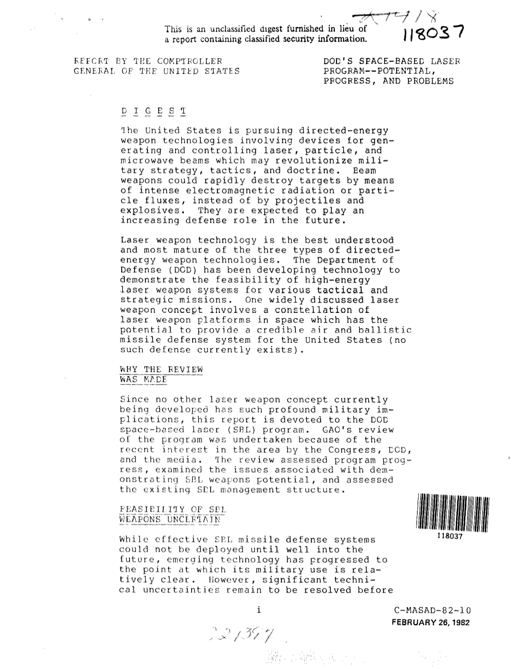 C-MASAD-82-10 DOD's Space-Based Laser Program