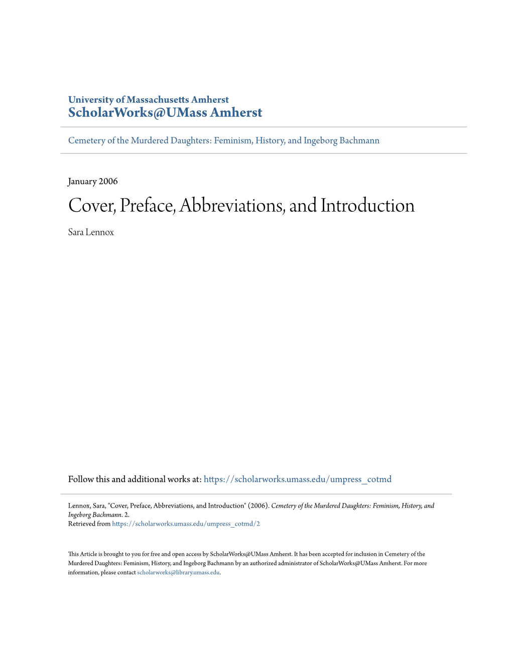 Cover, Preface, Abbreviations, and Introduction Sara Lennox