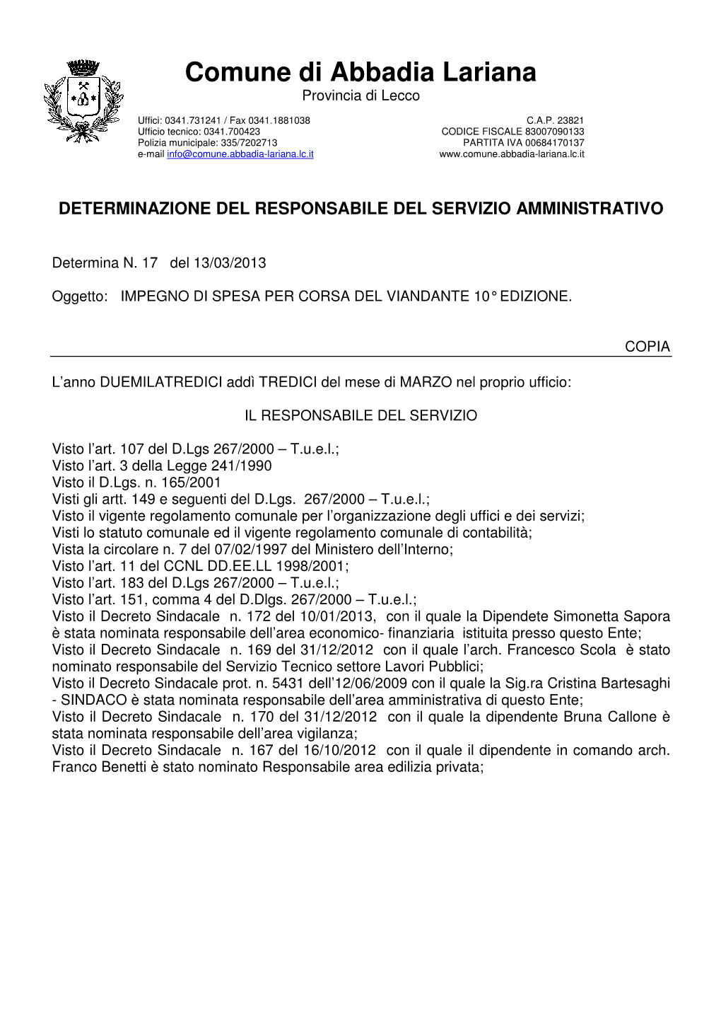 Comune Di Abbadia Lariana Provincia Di Lecco