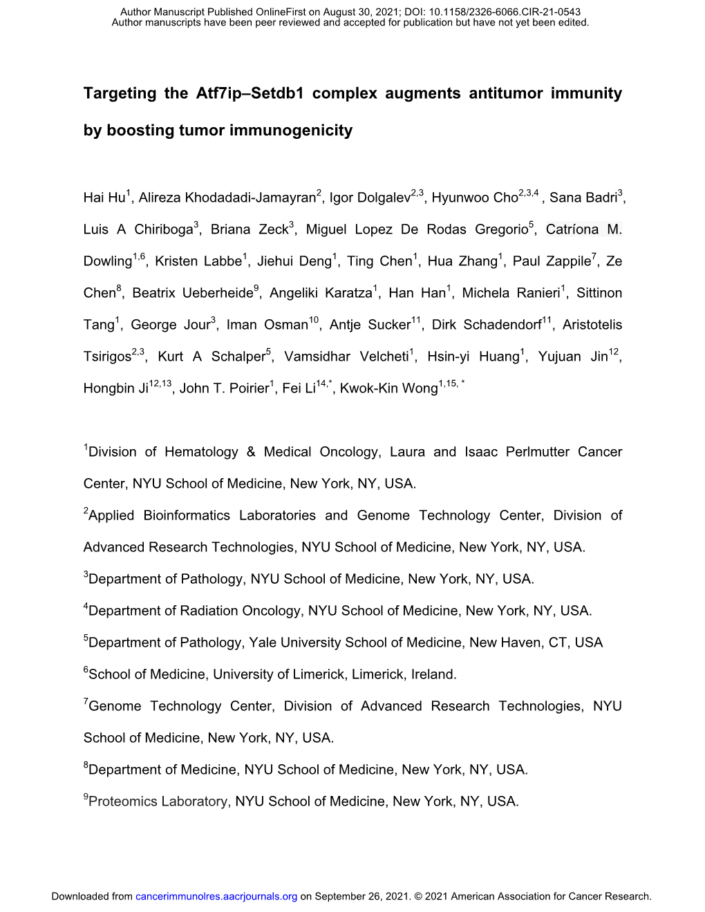 Targeting the Atf7ip-Setdb1 Complex Augments Antitumor Immunity by Boosting Tumor Immunogenicity