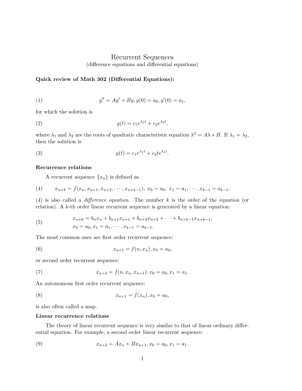 Recurrence Relations Luminita Vese November 14, 2006 Definition