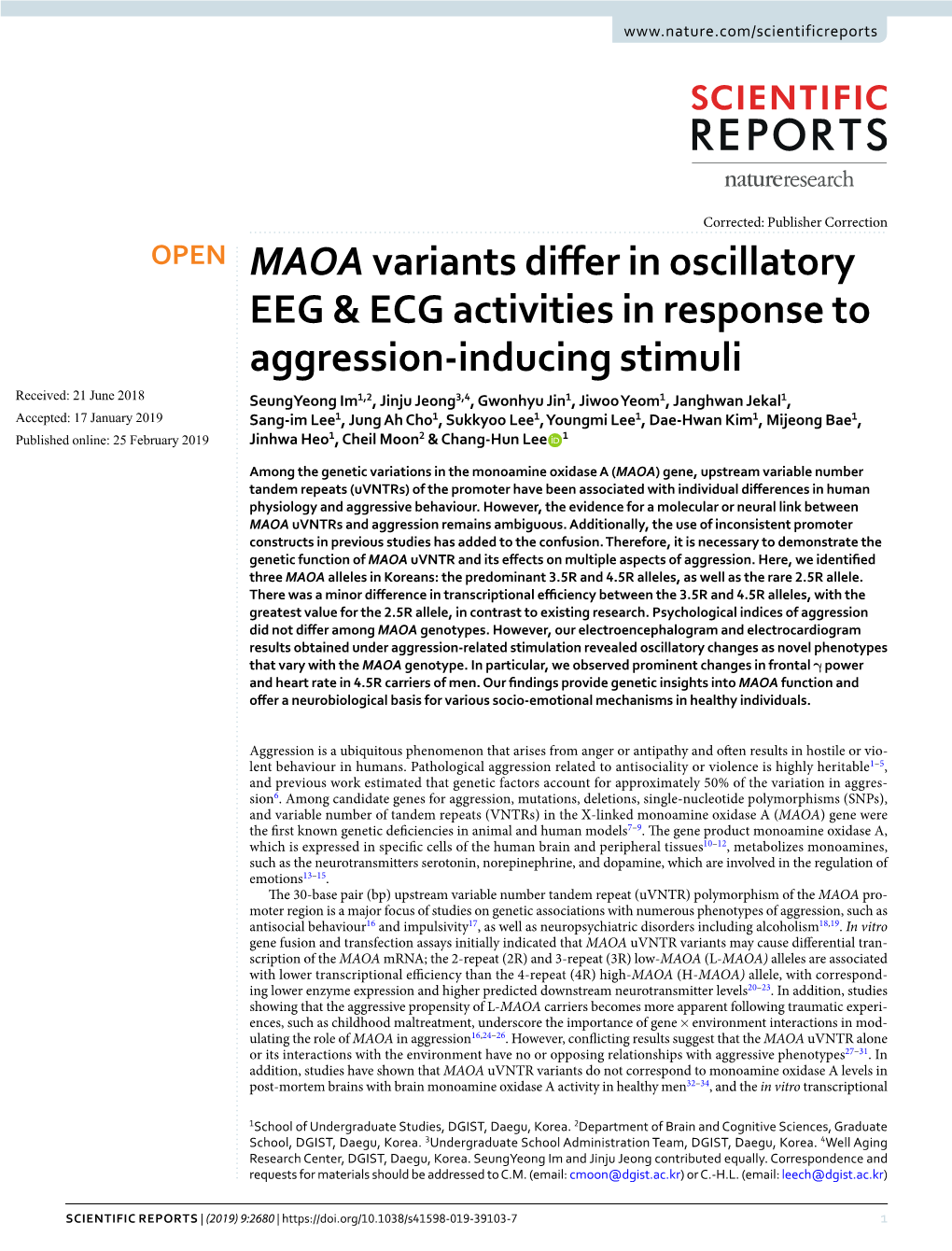 MAOA Variants Differ in Oscillatory EEG & ECG Activities in Response To