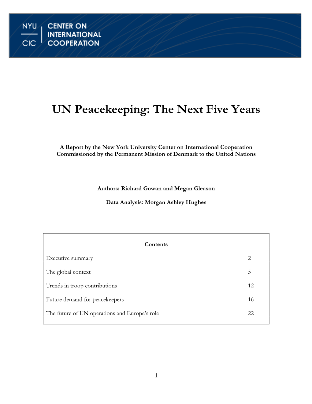 UN Peacekeeping: the Next Five Years
