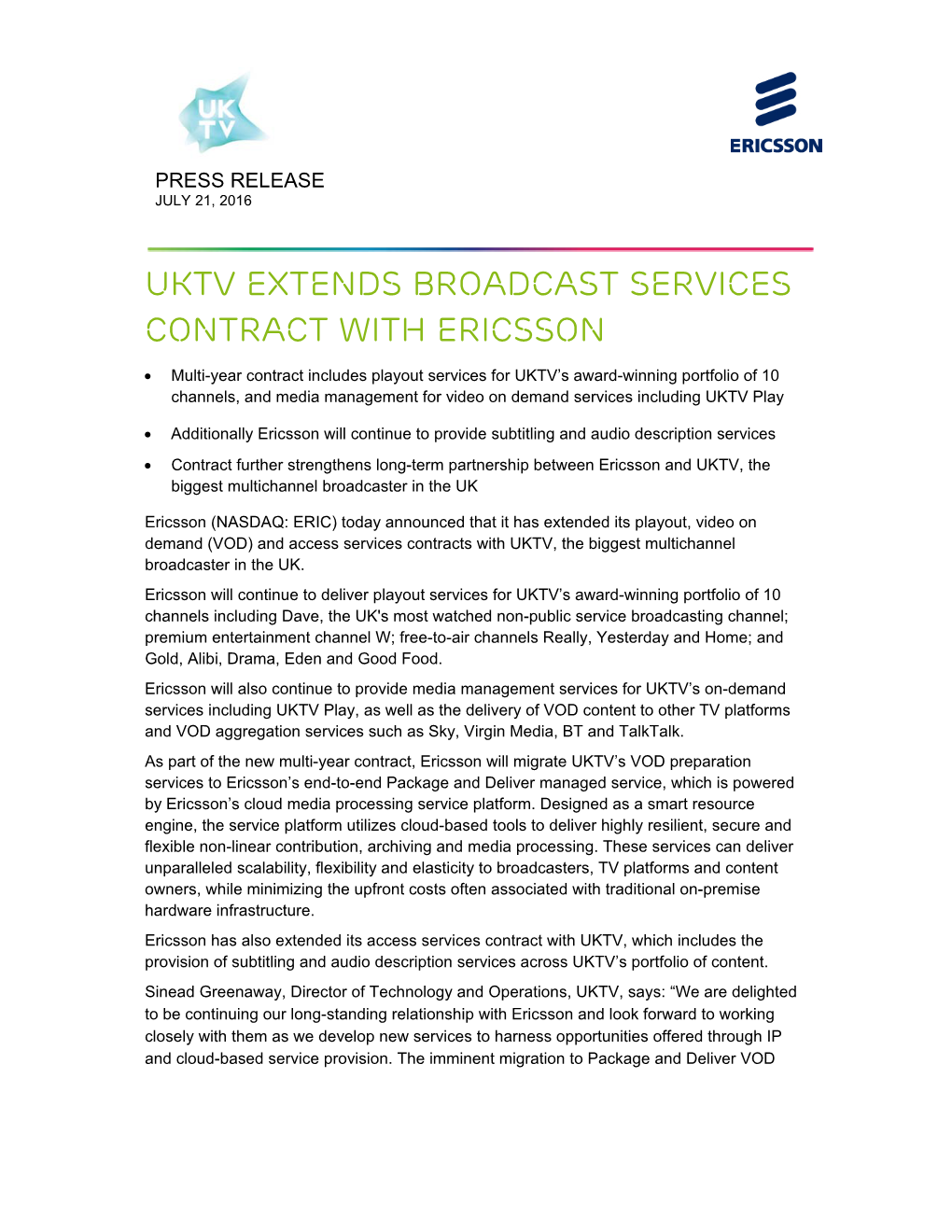 Case Study UKTV Satisfying 42 million viewers Web channel overhaul UKTV is a multi-award winning media “In 2012 we embarked on a large project company with eleven core brands: to redevelop all of our consumer and UKTV Play, Dave, Watch, Gold, Alibi, business websites from the ground Yesterday, Drama, Really, Home, Eden, up,” says UKTV Head of Digital Delivery, and Good Food. It’s home to the most Oliver Davies. “Moving from Cold popular non-PSB channel in the UK, Fusion, new channel sites were built in and reaches more than 42 million a fully responsive mobile-friendly grid, Like many companies, we really viewers every month. A ‘David to the using a Python Django-based content “ suffered from having images all Goliath brands’, UKTV is the fastest management system. Our digital asset over the place, in folders and on growing broadcaster in Britain. platform had to be the right fit.” desktops, and the workflow was proving difficult to manage. Our image management was something we were determined to get right. – Oliver Davies, Head of Digital Delivery, UKTV. ” Simplifying Solutions Third Light at Work UKTV chose an Enterprise Edition Third Light media library to host all 168,768 of its image assets. The system is accessed by 21 administrators, and 600+ in-house and press users. Simpler storage and retreival No more manual handling “We’d never used a third-party digital asset “Before we used the Third Light system, management tool before, so we did lots of our web editors had to go through a very research into different systems, and made manual process to prepare images for the decision to use Third Light as our tool websites. -