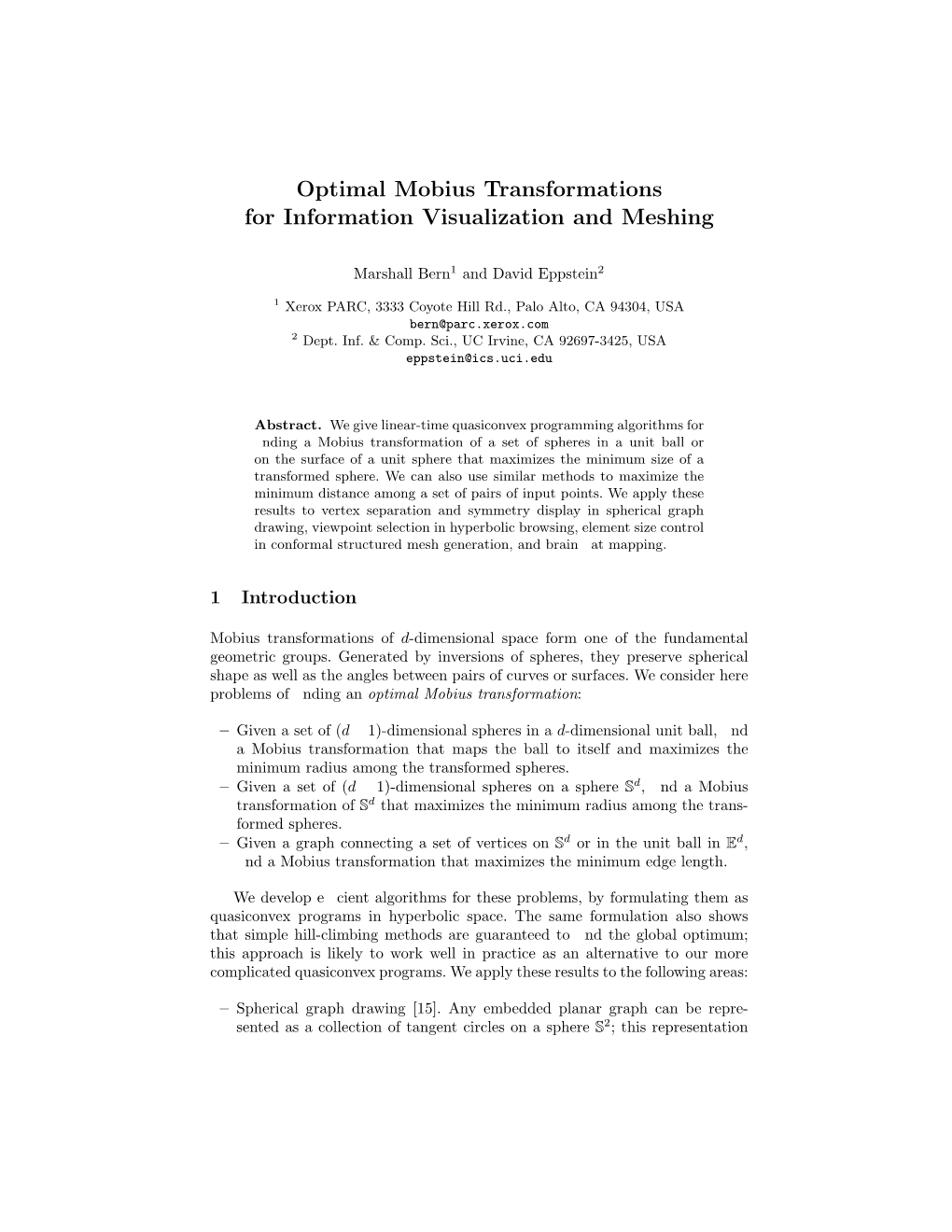 Models of 2-dimensional hyperbolic space and relations among them; Hyperbolic length, lines, and distances Cheng Ka Long, Hui Kam Tong 1155109623, 1155109049 Course Teacher: Prof. Yi-Jen LEE Department of Mathematics, The Chinese University of Hong Kong MATH4900E Presentation 2, 5th October 2020 Outline Upper half-plane Model (Cheng) A Model for the Hyperbolic Plane The Riemann Sphere C Poincar´eDisc Model D (Hui) Basic properties of Poincar´eDisc Model Relation between D and other models Length and distance in the upper half-plane model (Cheng) Path integrals Distance in hyperbolic geometry Measurements in the Poincar´eDisc Model (Hui) M¨obiustransformations of D Hyperbolic length and distance in D Conclusion Boundary, Length, Orientation-preserving isometries, Geodesics and Angles Reference Upper half-plane model H Introduction to Upper half-plane model - continued Hyperbolic geometry Five Postulates of Hyperbolic geometry: 1. A straight line segment can be drawn joining any two points. 2. Any straight line segment can be extended indefinitely in a straight line. 3. A circle may be described with any given point as its center and any distance as its radius. 4. All right angles are congruent. 5. For any given line R and point P not on R, in the plane containing both line R and point P there are at least two distinct lines through P that do not intersect R. Some interesting facts about hyperbolic geometry 1. Rectangles don't exist in hyperbolic geometry. 2. In hyperbolic geometry, all triangles have angle sum < π 3. In hyperbolic geometry if two triangles are similar, they are congruent. -