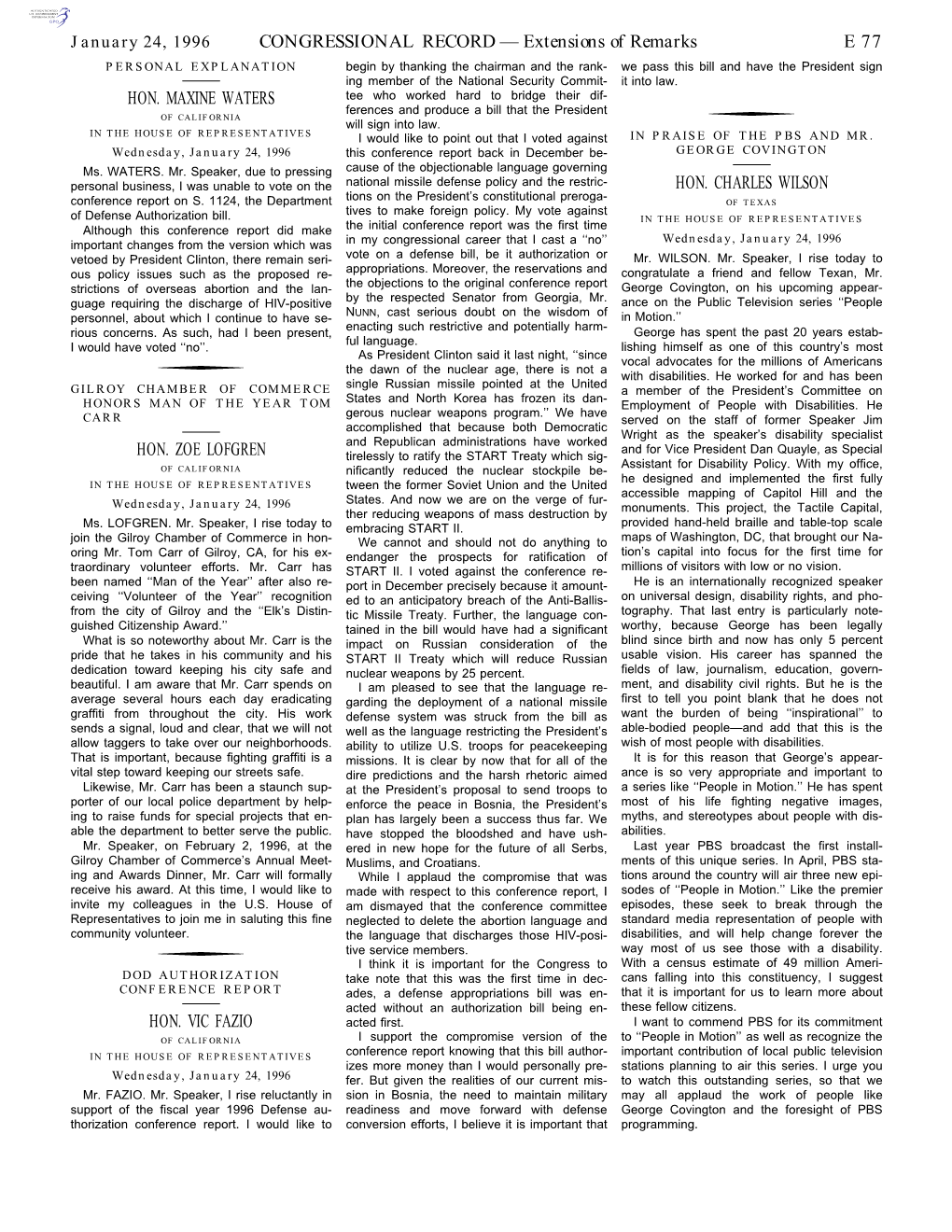 Extensions of Remarks E 77 HON. MAXINE WATERS