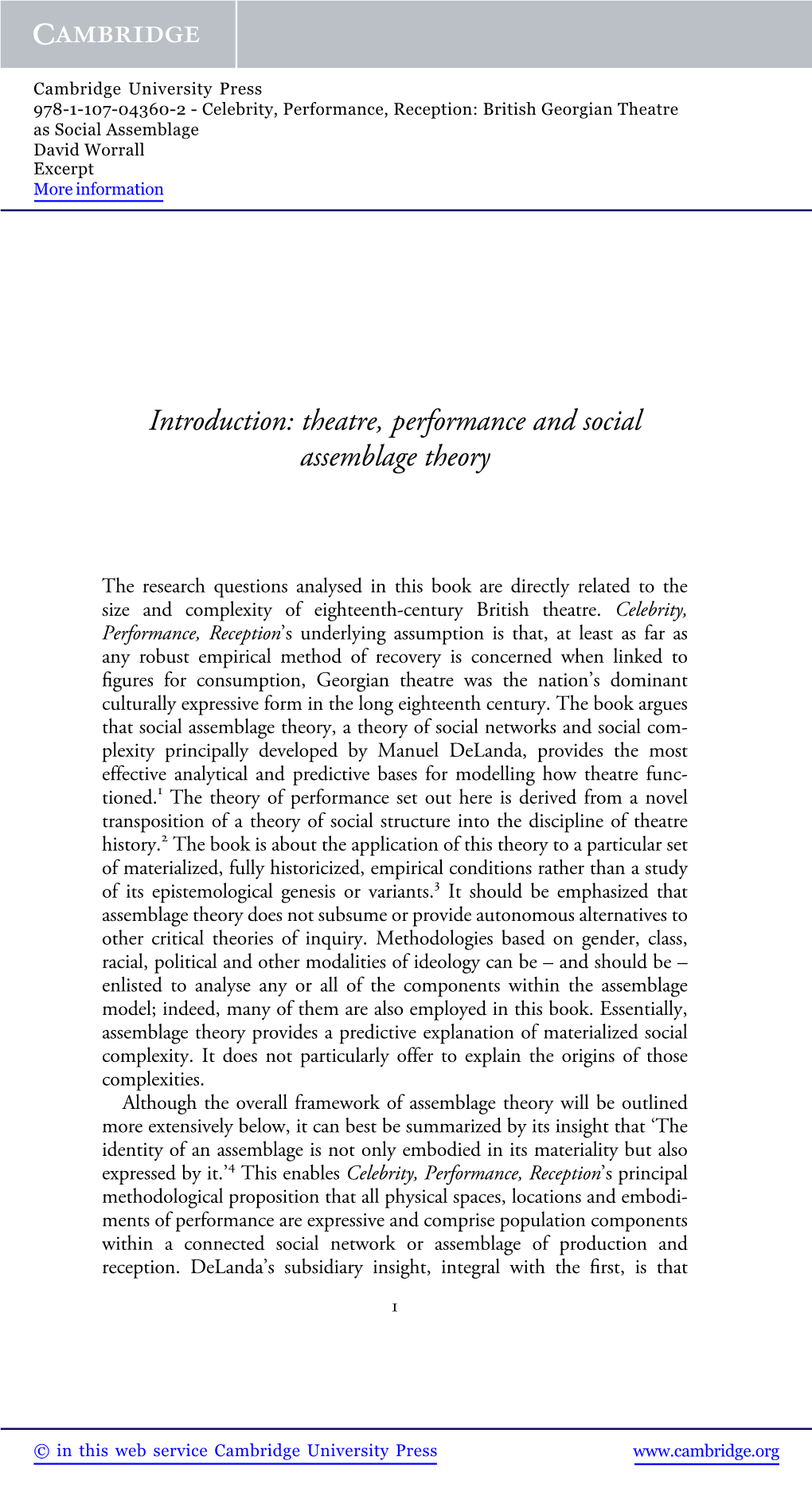 Introduction: Theatre, Performance and Social Assemblage Theory