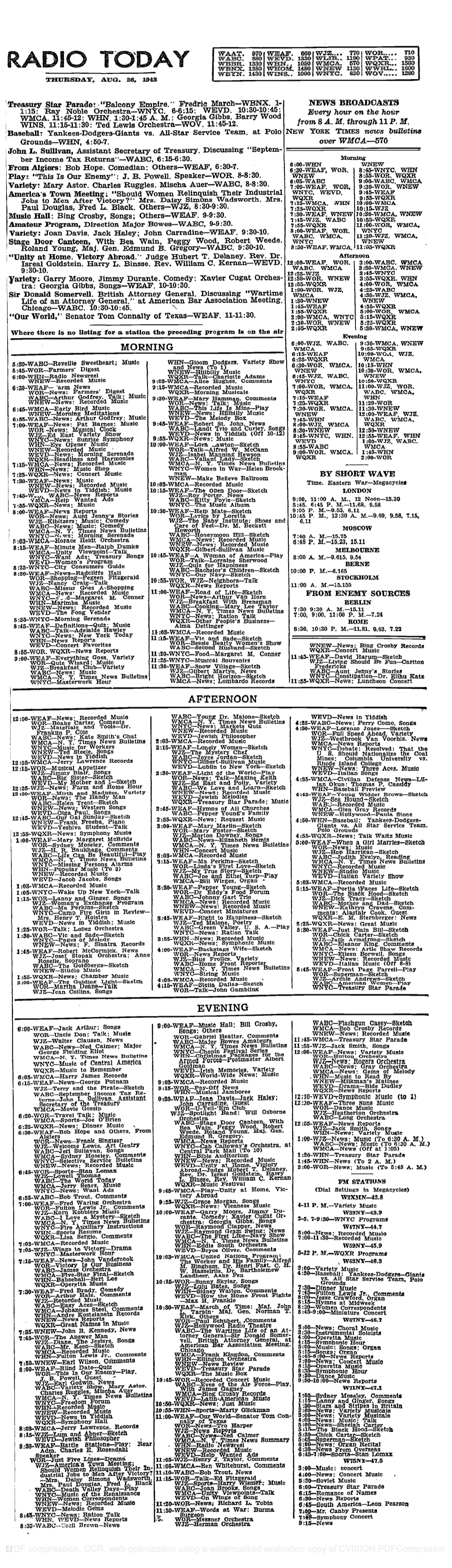 WJSV (Washington, D.C.) (Complete day of radio broadcasting) (September 21, 1939) Added to the National Registry: 2003 Essay by Cary O’Dell “The Goldbergs” Arthur Godfrey Joe E. Brown Radio station WJSV, now WTOP in Washington, DC, has had a long and sometimes checkered history. The station, then bearing the call letters WTRC, signed on the air for the first time from Brooklyn, New York, on September 25, 1926. It was founded by The Twentieth (District) Republican Club, which was actually something of a front for the Ku Klux Klan. Eventually, under pressure from local politicians, WTRC was forced out of New York City. In 1927, it relocated to Mount Vernon Hills, Virginia, and changed its call letters to WTFF. Still, though its locale and call letters changed, little else did. Its new call letters, WTFF, stood for “The Fellowship Forum,” the name of the KKK’s leading newspaper. And its new owner, John S. Vance (who, in 1929, would go on to change the call letters again, this time to his own initials, WJSV) held the title of Grand Wizard within the KKK organization. For a few years, billing itself as an “independent voice from the heart of the nation,” WSJV broadcast at 10,000 watts into the northern Virginia and Washington, DC, area. In 1932, though, Klan involvement with the station finally ended when the station was purchased by the Columbia Broadcasting Service (CBS) as its newest network affiliate and its primary station in the DC area. Though now under CBS ownership, the station did not however undergo another change in call letters.