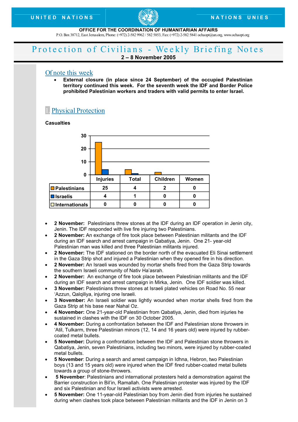 Protection of Civilians - Weekly Briefing Notes 2 – 8 November 2005