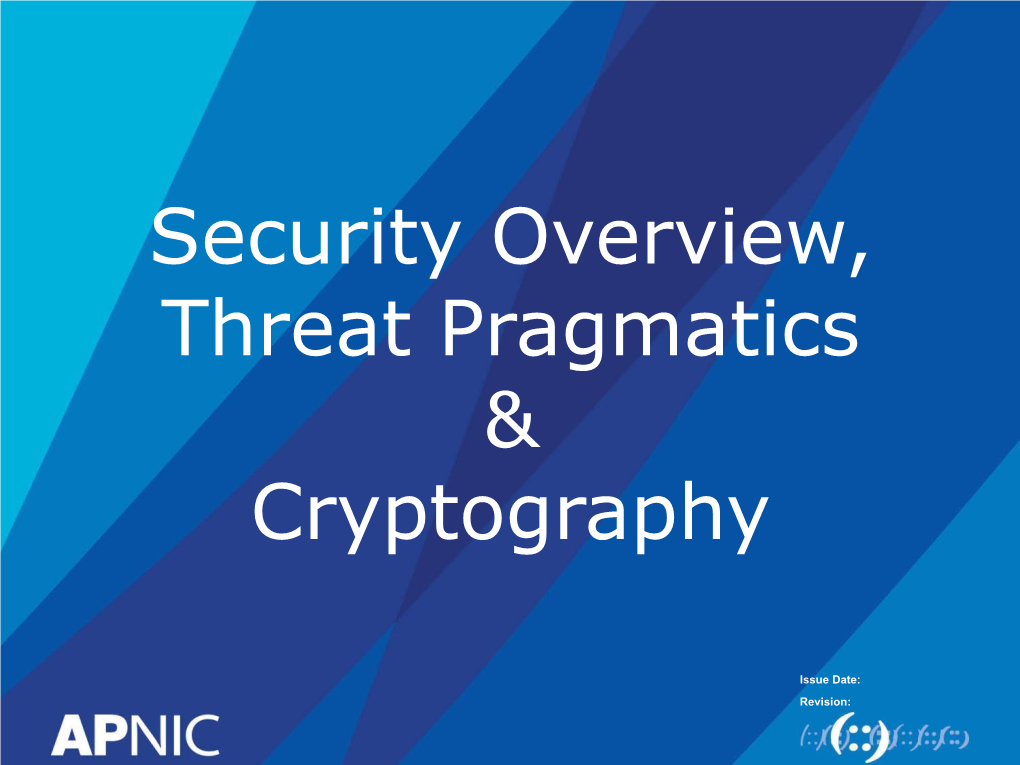 Security Overview, Threat Pragmatics & Cryptography