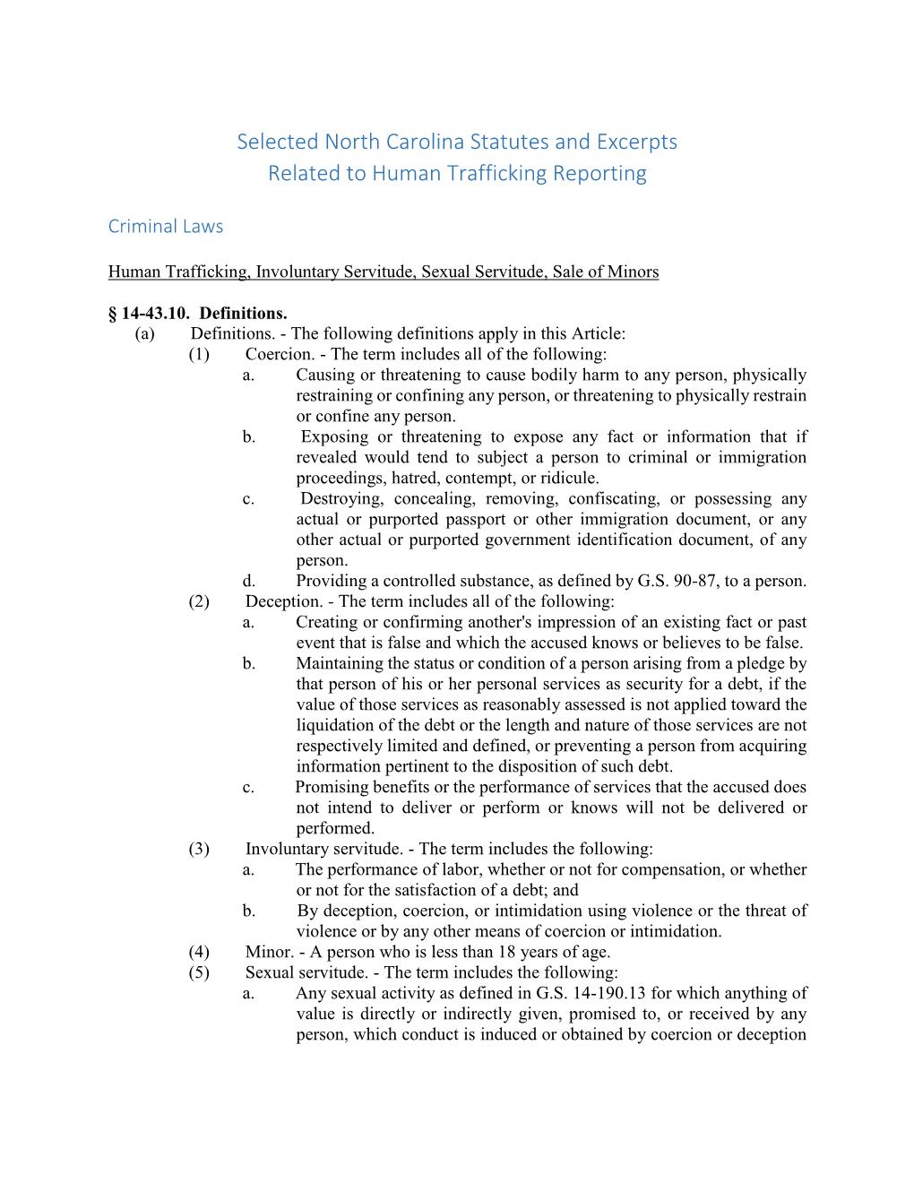 Selected NC Statutes