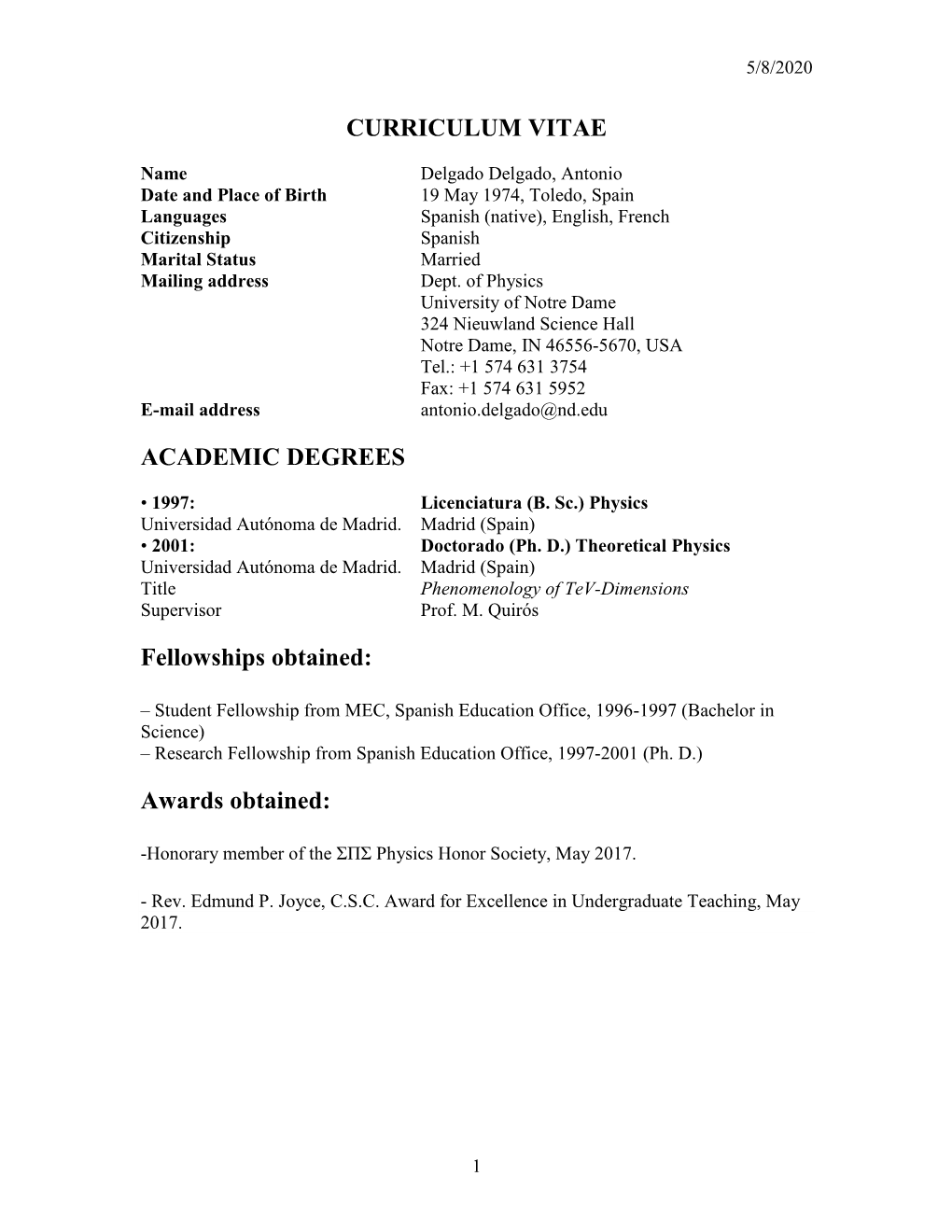 Curriculum Vitæ