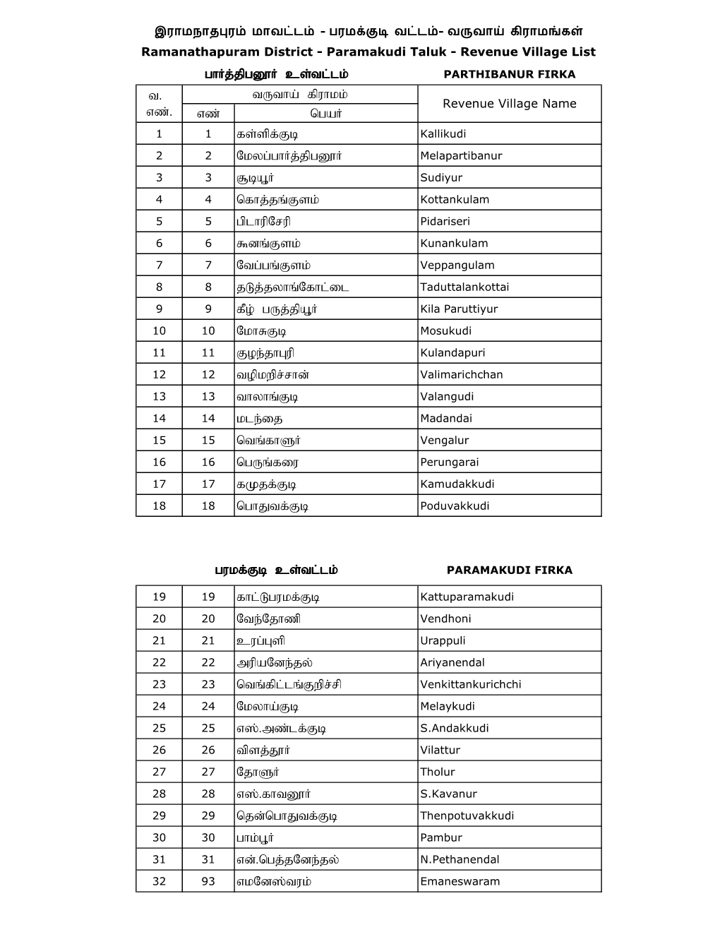 List of Polling Stations for 209 Paramakudi Assembly Segment