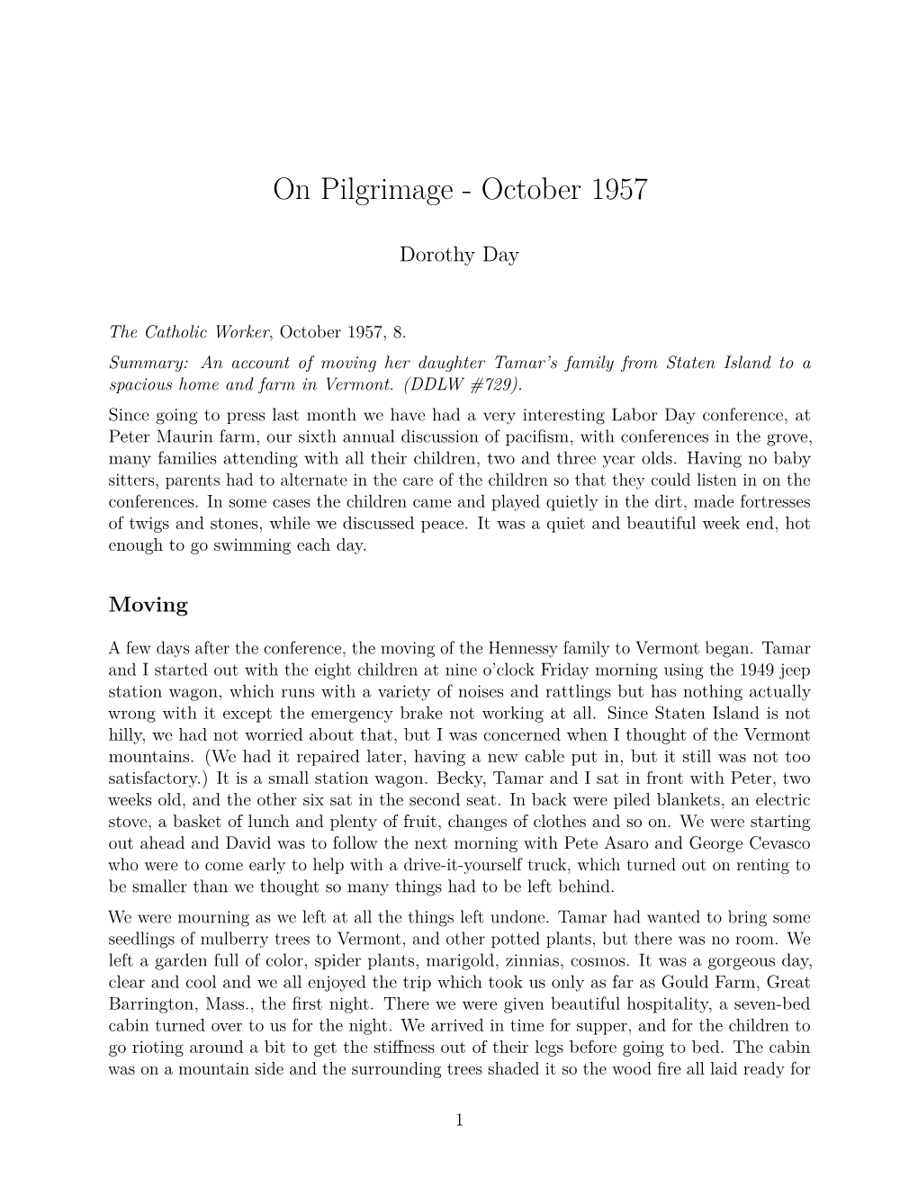 On Pilgrimage - October 1957