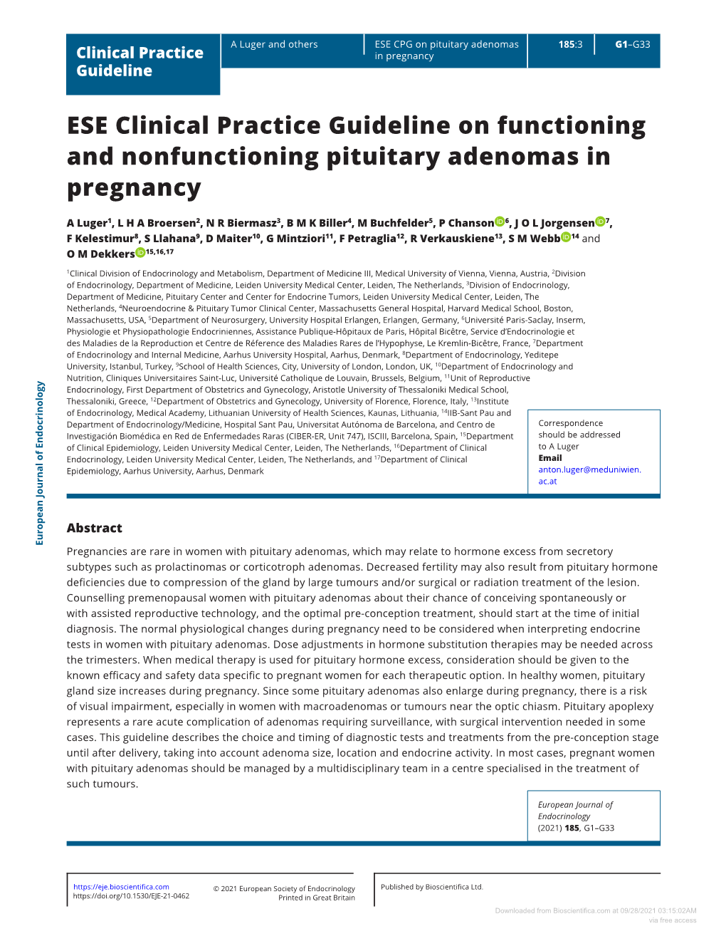ESE Clinical Practice Guideline on Functioning and Nonfunctioning Pituitary Adenomas in Pregnancy
