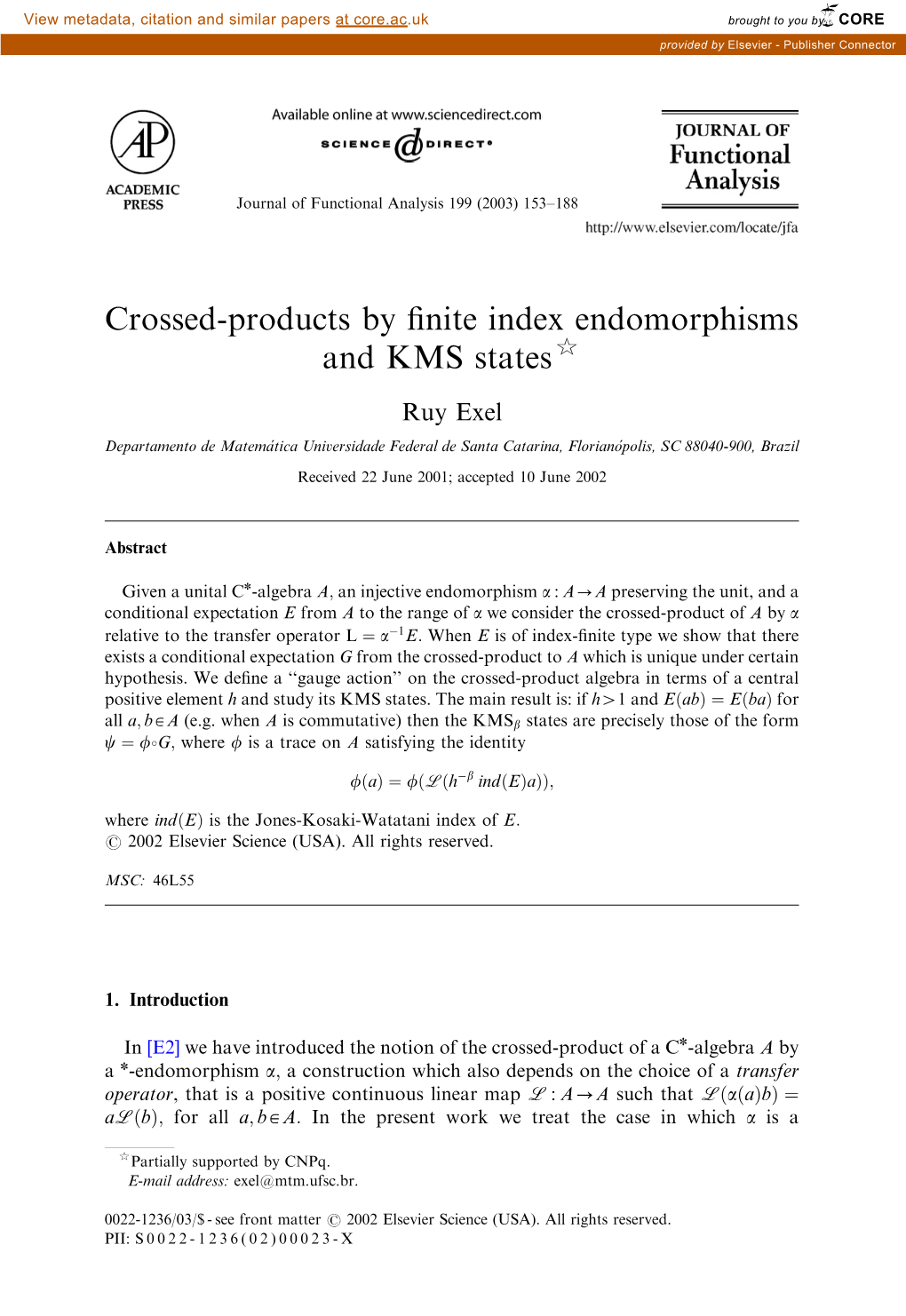 Crossed-Products by Finite Index Endomorphisms and KMS States