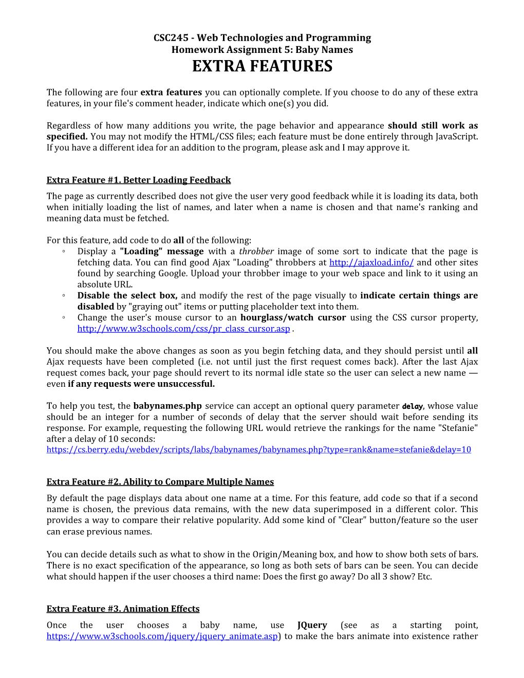 Specification for Optional Extra Credit Features
