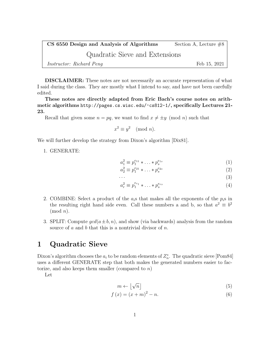 Quadratic Sieve and Extensions 1 Quadratic Sieve