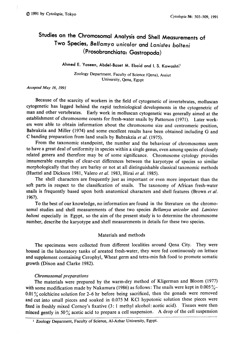 Studies on the Chromosomal Analysis and Shell Measurements of Two