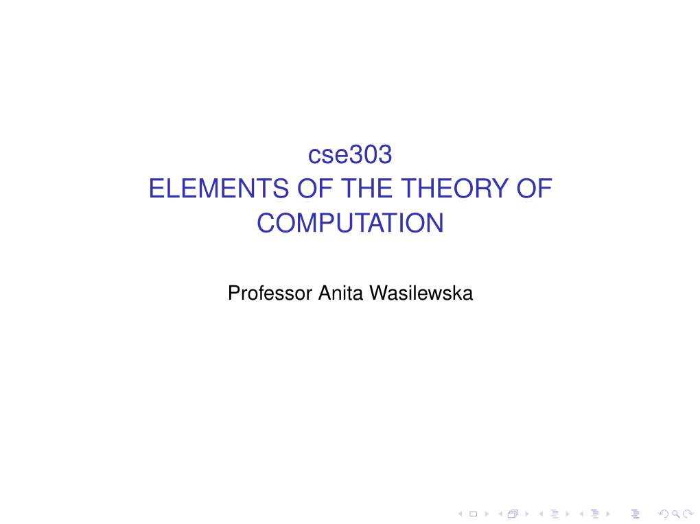 Cse303 ELEMENTS of the THEORY of COMPUTATION