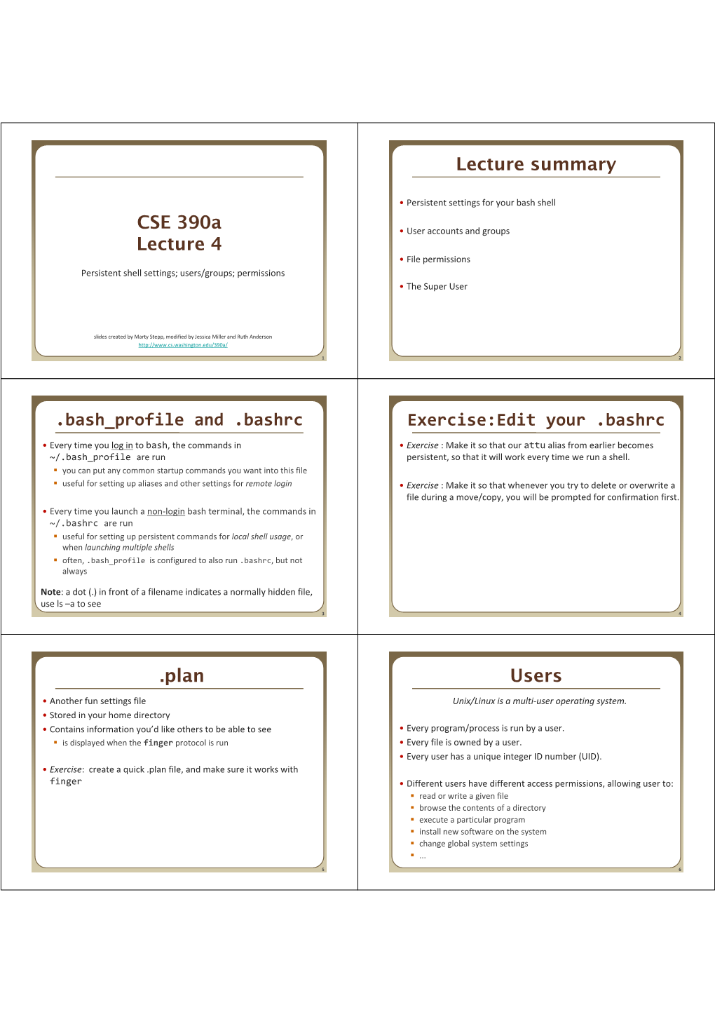 Unix login Profile A general discussion of shell processes, shell scripts, shell functions and aliases is a natural lead in for examining the characteristics of the login profile. The term “shell” is used to describe the command interpreter that a user runs to interact with the Unix operating system. When you login, a shell process is initiated for you, called your login shell. There are a number of "standard" command interpreters available on most Unix systems. On the UNF system, the default command interpreter is the Korn shell which is determined by the user’s entry in the /etc/passwd file. From within the login environment, the user can run Unix commands, which are just predefined processes, most of which are within the system directory named /usr/bin. A shell script is just a file of commands, normally executed at startup for a shell process that was spawned to run the script. The contents of this file can just be ordinary commands as would be entered at the command prompt, but all standard command interpreters also support a scripting language to provide control flow and other capabilities analogous to those of high level languages. A shell function is like a shell script in its use of commands and the scripting language, but it is maintained in the active shell, rather than in a file. The typically used definition syntax is: <function-name> () { <commands> } It is important to remember that a shell function only applies within the shell in which it is defined (not its children). Functions are usually defined within a shell script, but may also be entered directly at the command prompt. -