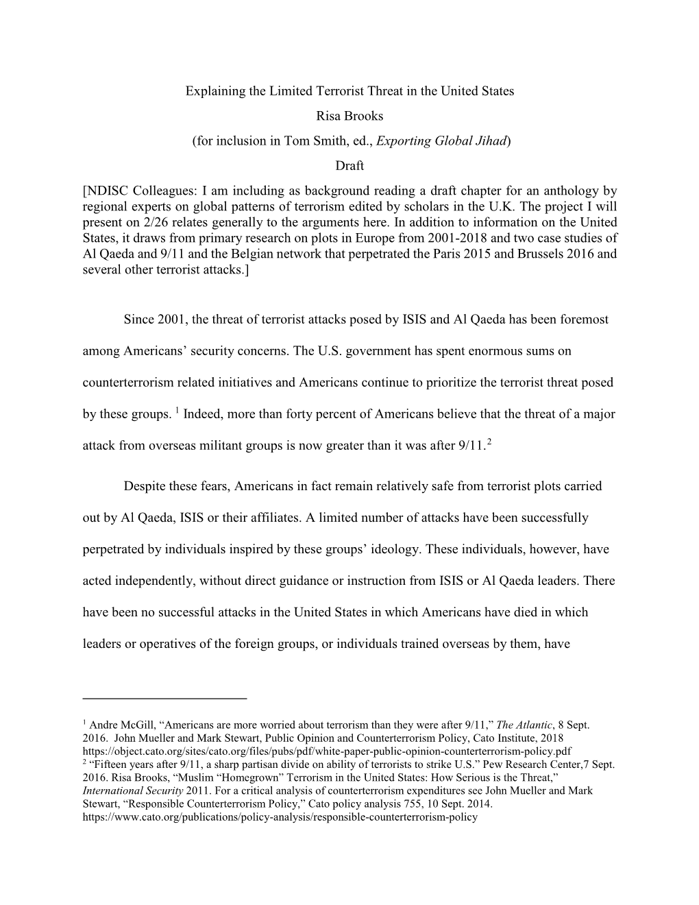 Explaining the Limited Terrorist Threat in the United States Risa Brooks