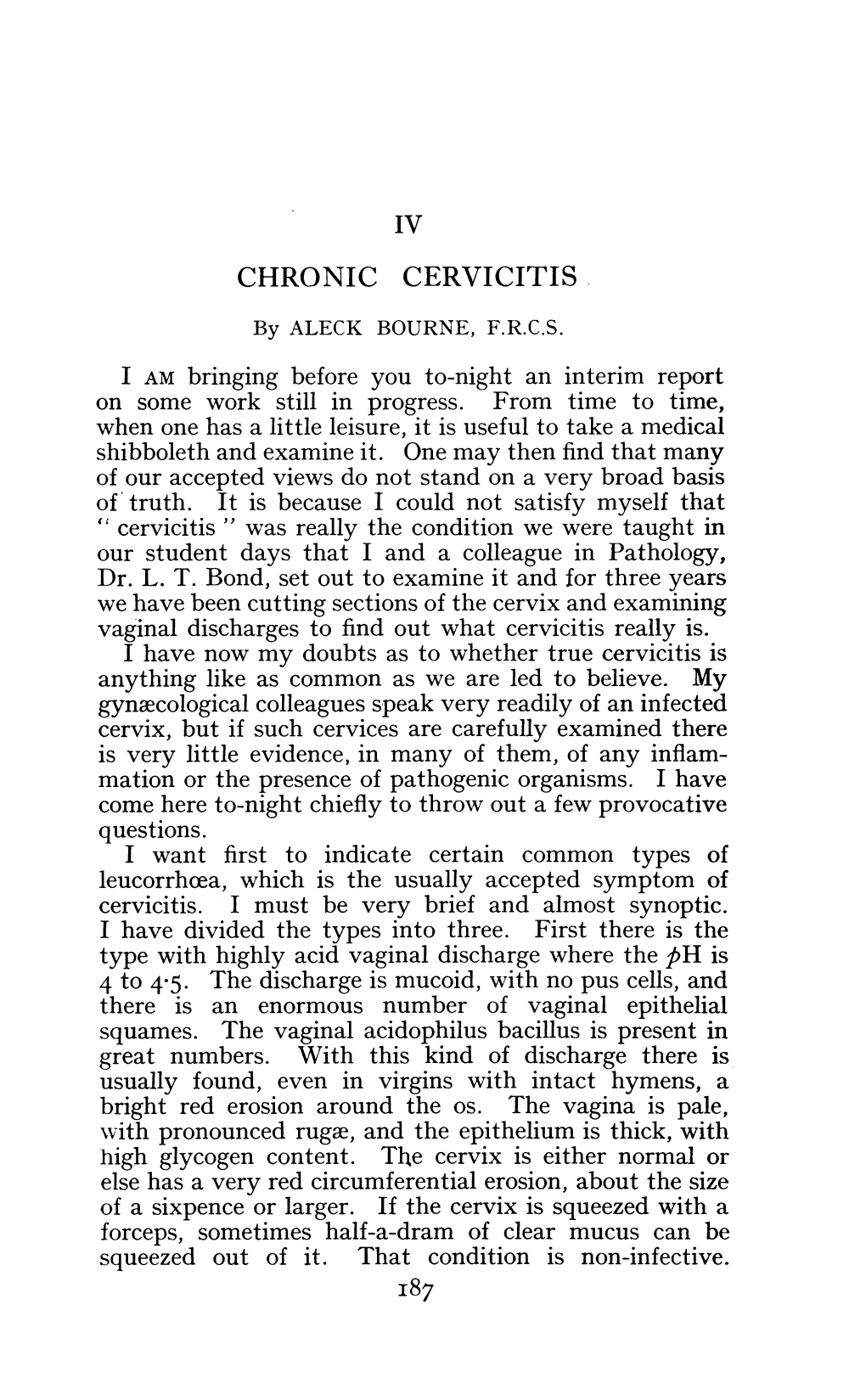CHRONIC CERVICITIS by ALECK BOURNE, F.R.C.S