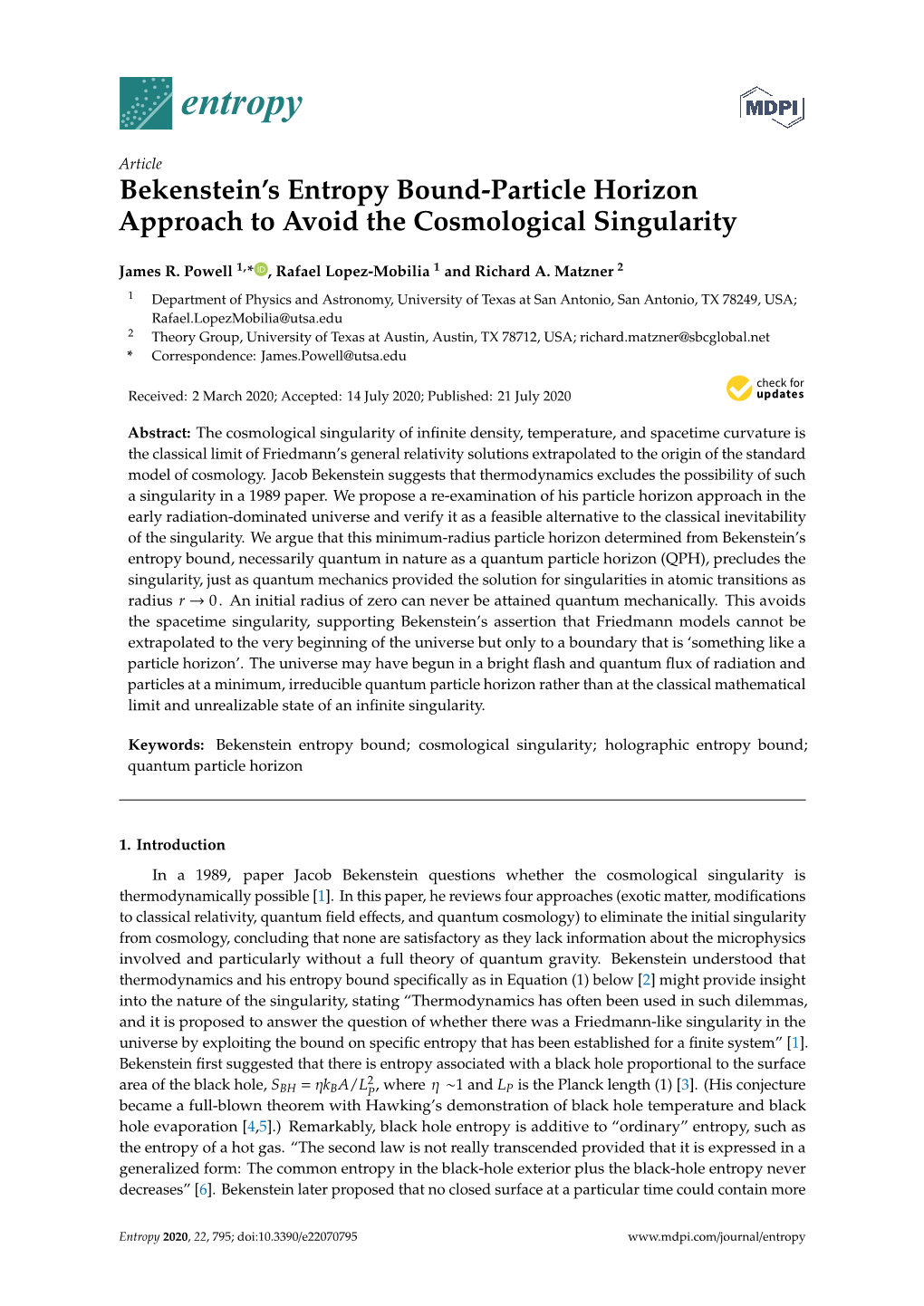 Black holes and information theory Jacob D. Bekenstein∗ During the past three decades investigators have unveiled a number of deep connections between physical information and black holes whose consequences for ordinary systems go beyond what has been deduced purely from the axioms of information theory. After a self-contained introduction to black hole thermodynamics, we review from its vantage point topics such as the information conundrum that emerges from the ability of incipient black holes to radiate, the various entropy bounds for non-black hole systems (holographic bound, universal entropy bound, etc) which are most easily derived from black hole thermodynamics, Bousso’s covariant entropy bound, the holo- graphic principle of particle physics, and the subject of channel capacity of quantum communication channels. PACS numbers: 89.70.+c,03.67.-a,04.70.-s,04.70.Dy,65.40.Gr I. INTRODUCTION ation has sapped all mass from the black hole so that it effectively evaporates, we are left with just a mixed Black holes entered the stage of natural science—as quantum state of radiation. That is, the black hole has an astrophysical paradigm—when British scientist and catalysed conversion of a pure state into a mixed state, cleric John Michell [1] and French mathematician, as- in contradiction to the principle of unitary quantum evo- tronomer and peer P. S. de Laplace [2] independently lution. Mixed means entropic, and so one can view what remarked that a star with a sufficiently large ratio of has happened as a loss of information. This is the gist of mass to radius cannot be observed by its own light be- the information paradox, which cannot be said to have cause for such configuration the escape velocity exceeds been settled to everybody’s satisfaction, but which has the speed of the light corpuscles.