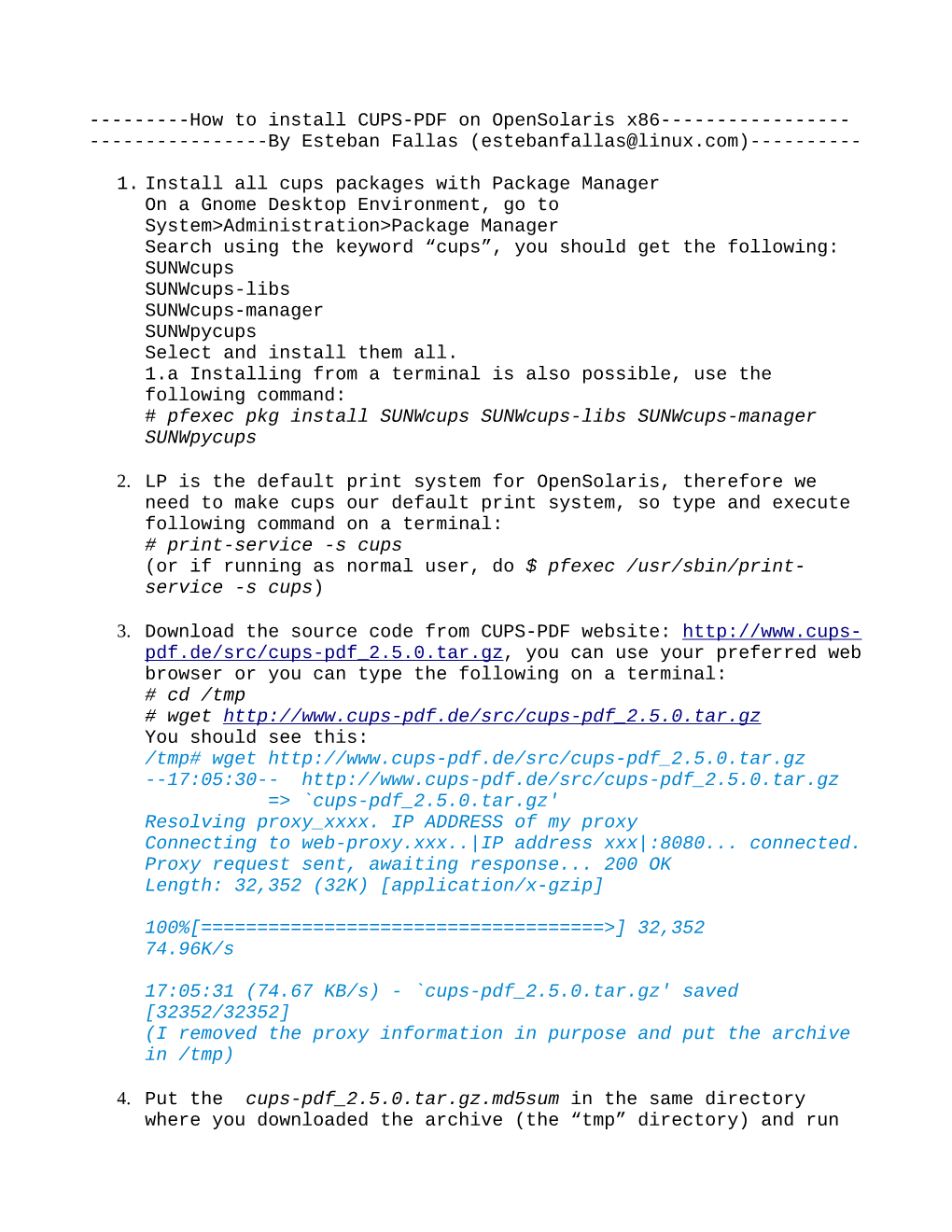 How to Install CUPS-PDF on Opensolaris X86------By Esteban Fallas ([email protected])