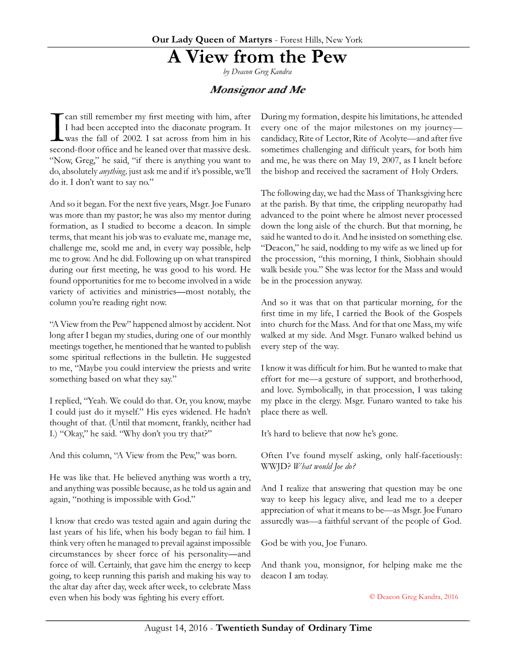 Monsignor and Me
